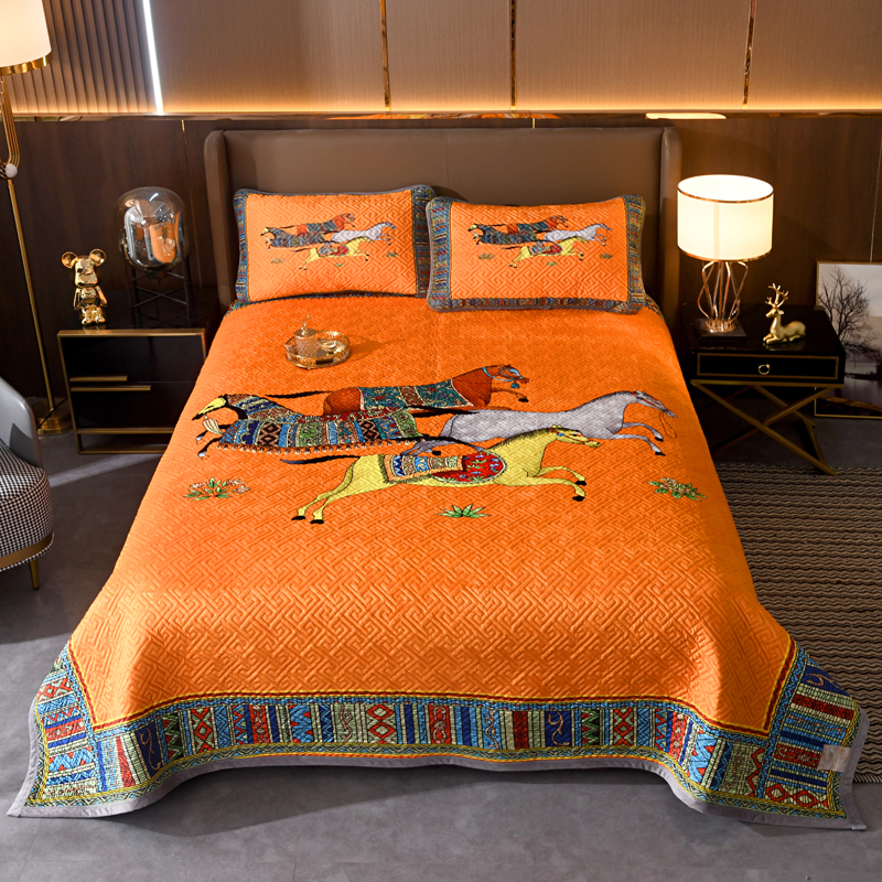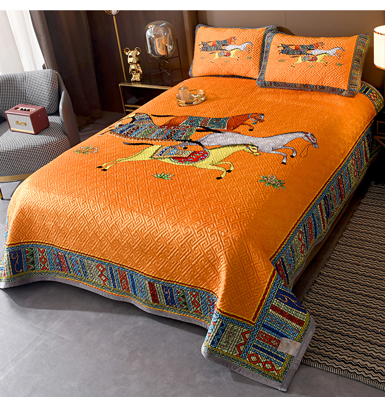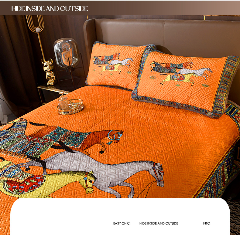 (总)爵仕家纺 2025新款凉感真丝床盖三件套,豹,大天使,宫廷马,金典,骏马白,郎世宁马,女皇,赛马场,十骏马白,驯马人,指南者