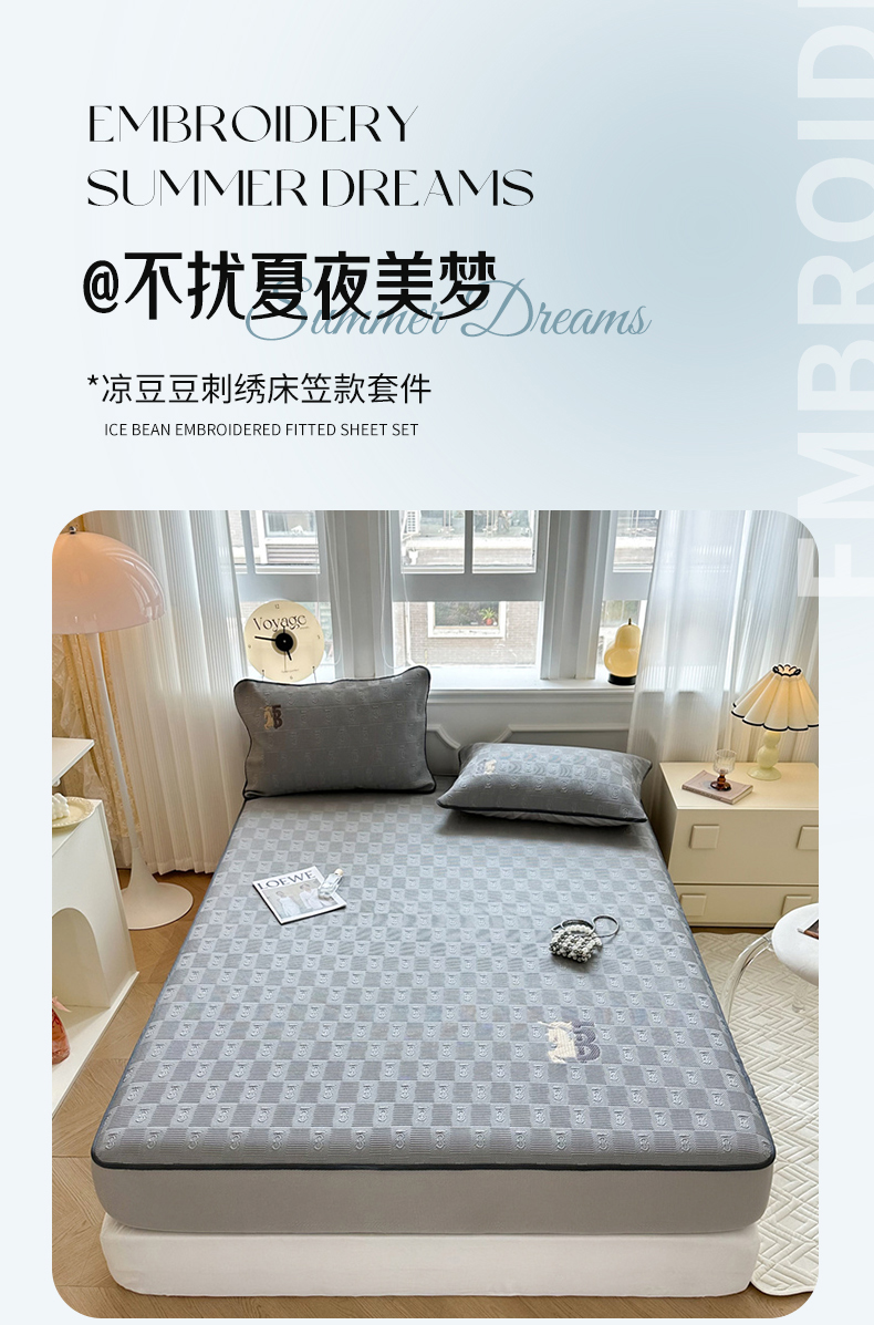 商品名称:首尔 2024新款凉豆豆席刺绣款冰丝席 英伦灰
