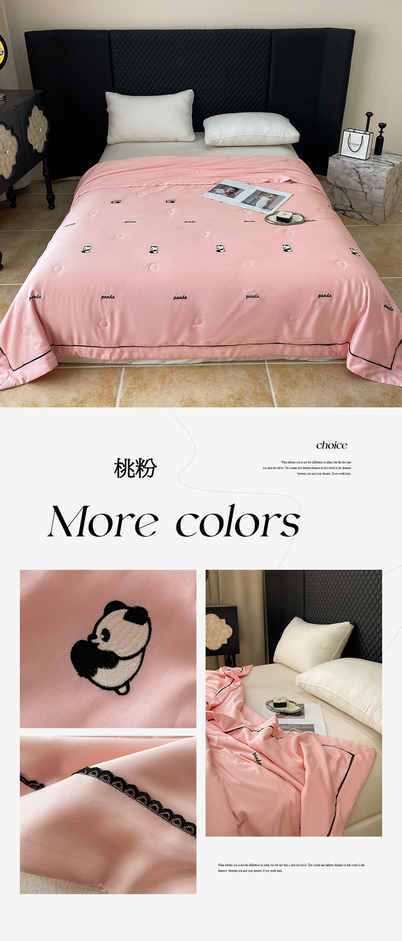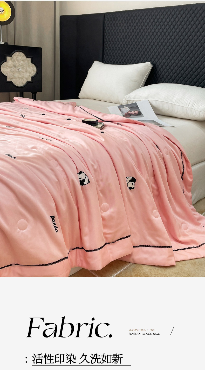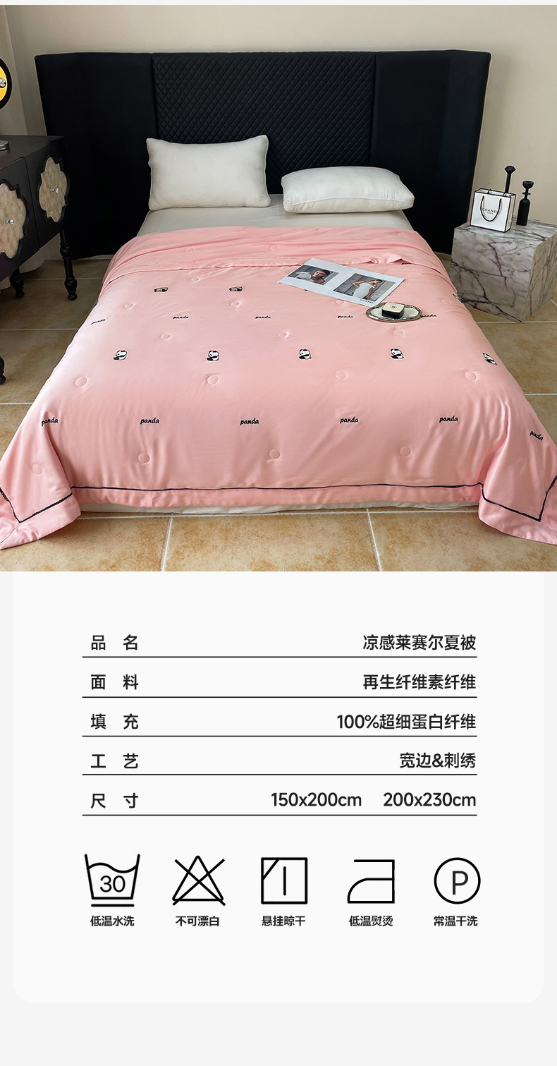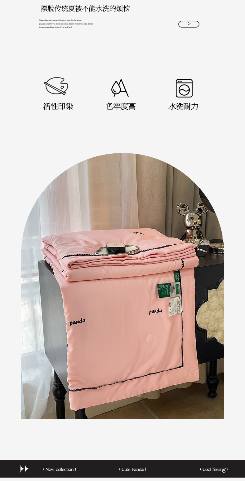 商品名称:被靠被 2024新款熊猫刺绣凉感莱赛尔夏被被子被芯 桃粉