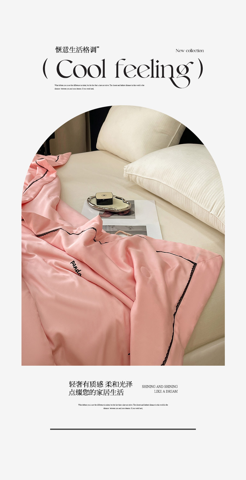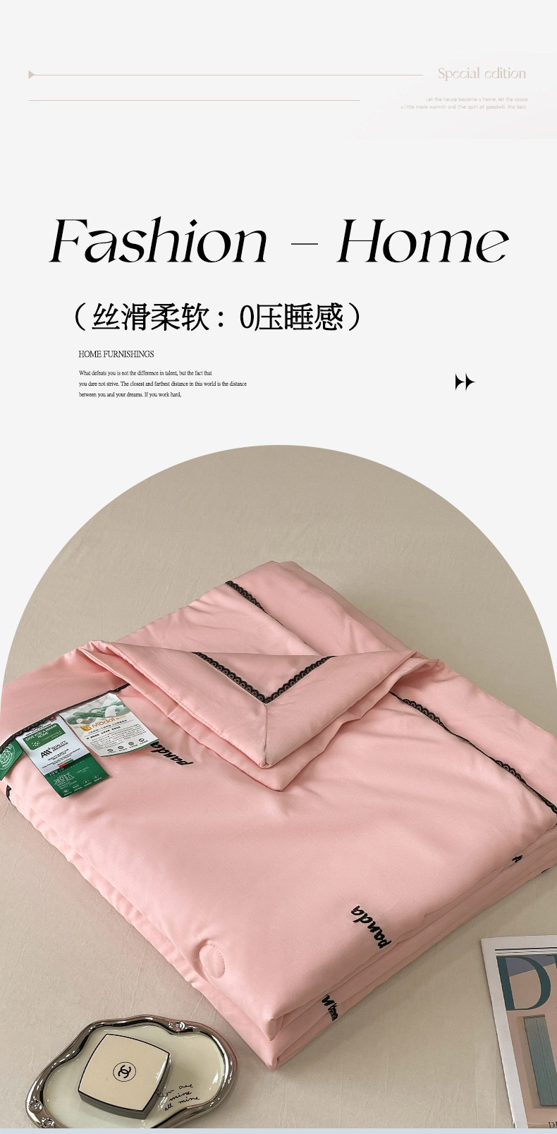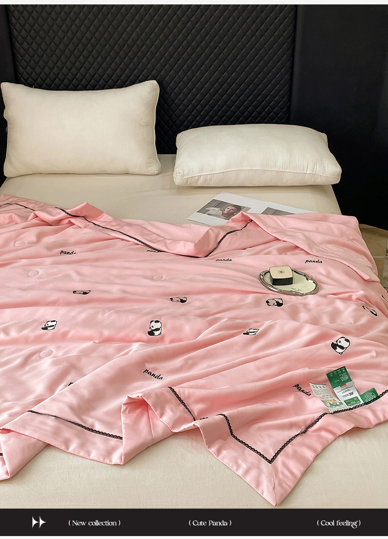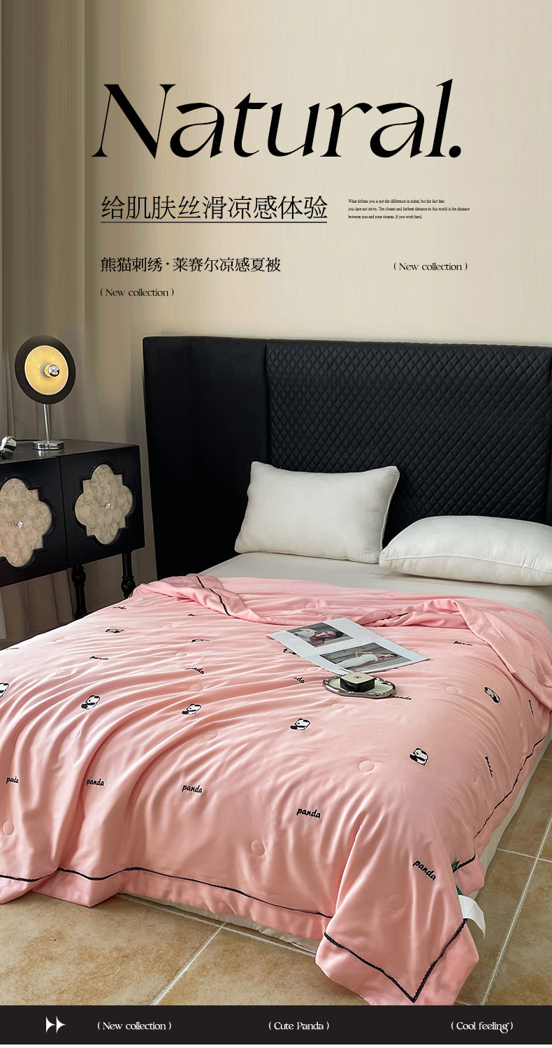 商品名称:被靠被 2024新款熊猫刺绣凉感莱赛尔夏被被子被芯 桃粉