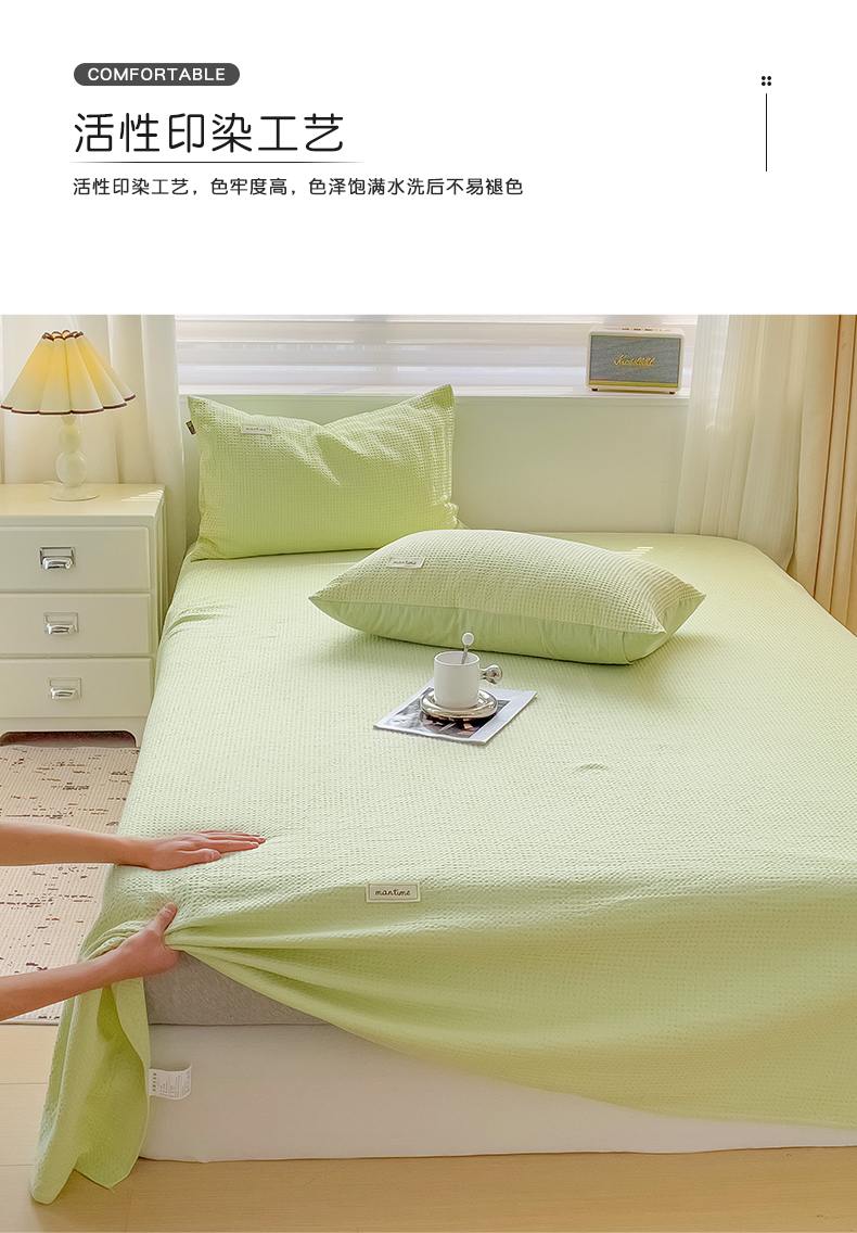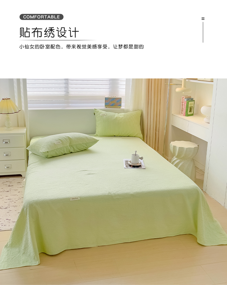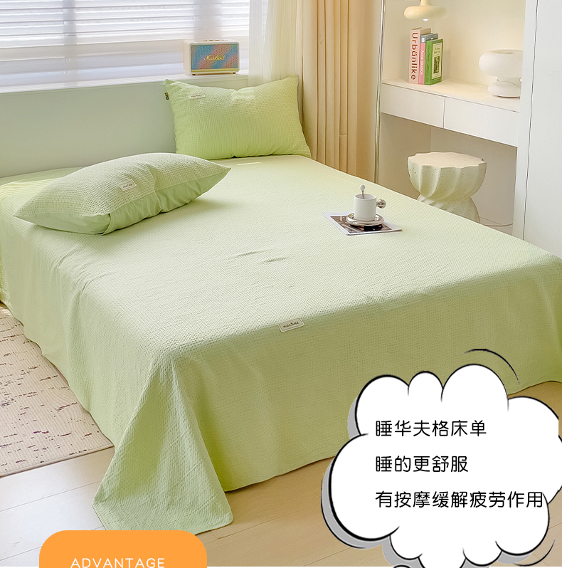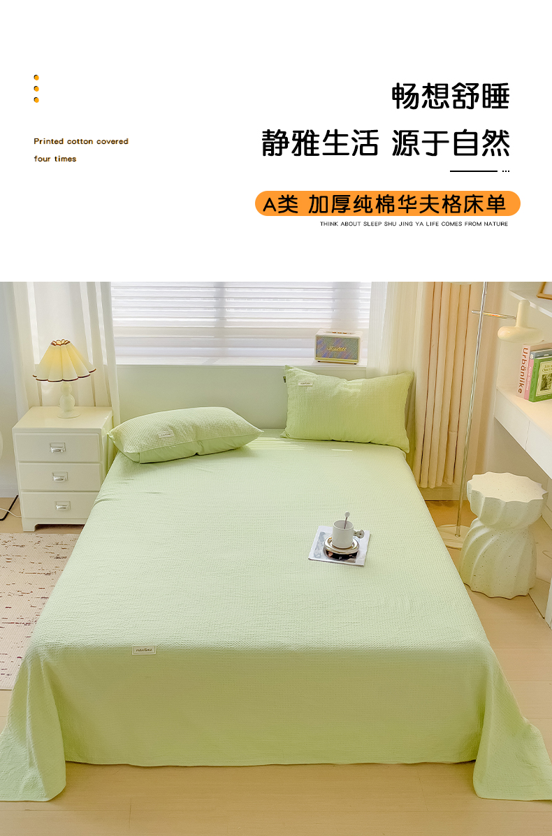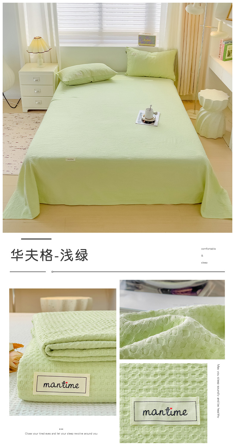 静家居-简约原创家纺 2024新款A类简约纯棉华夫格单品系列-单床单 华夫格-浅绿