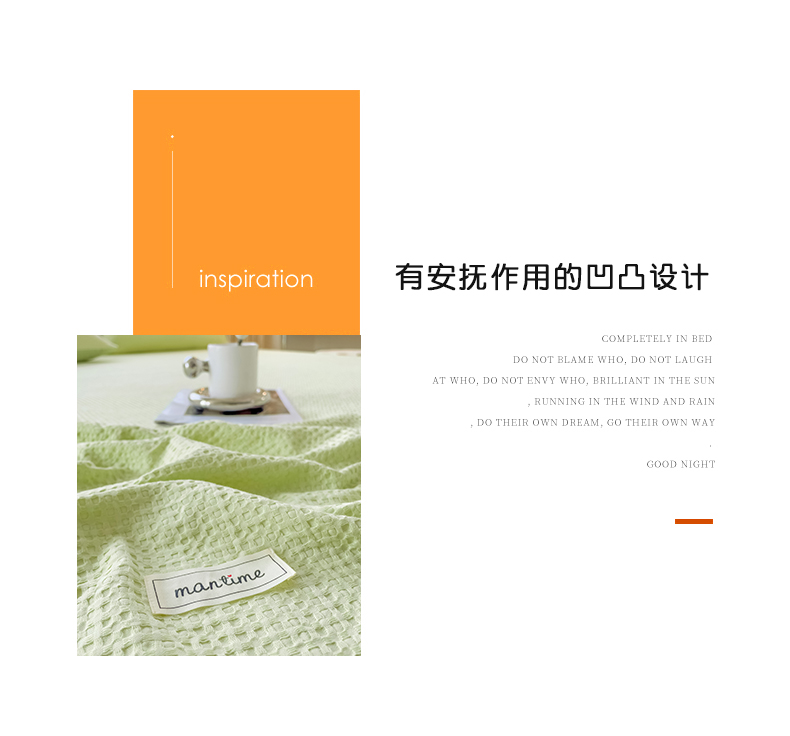商品名称:静家居-简约原创家纺 2024新款A类简约纯棉华夫格单品系列-单床单 华夫格-浅绿