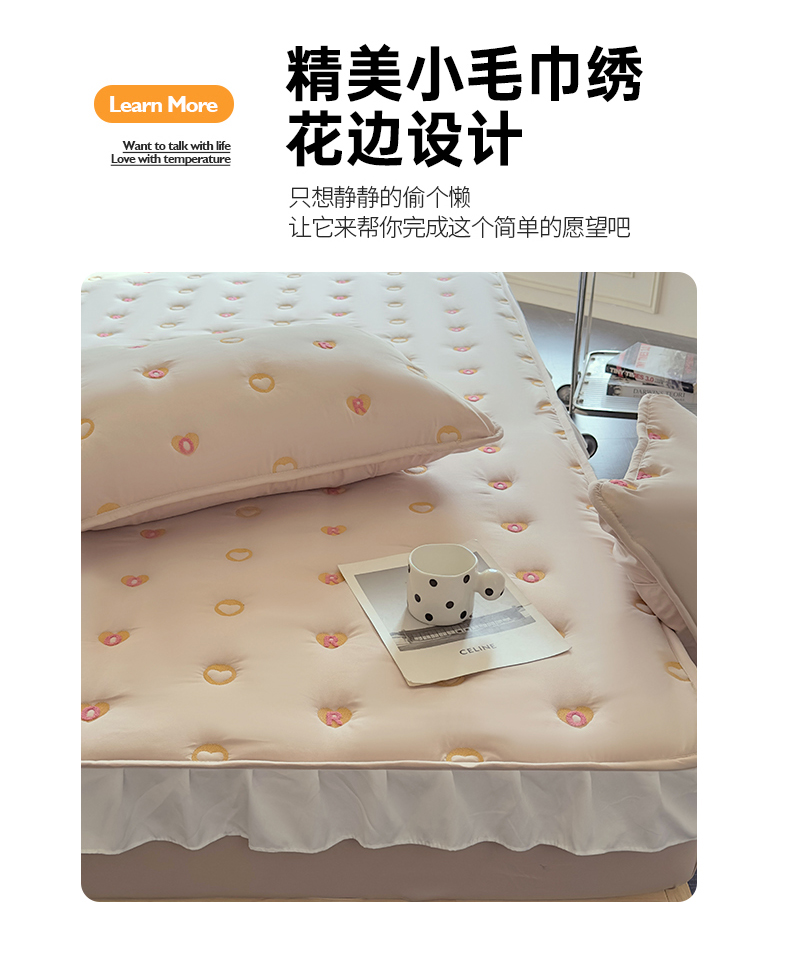 尊康家纺(原磊科) 2024新款奶昔棉小毛巾绣花边床笠 小毛巾绣-香槟