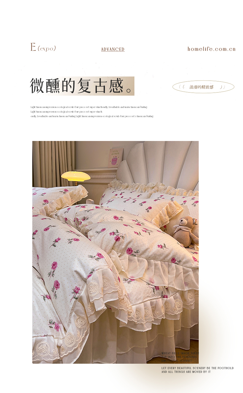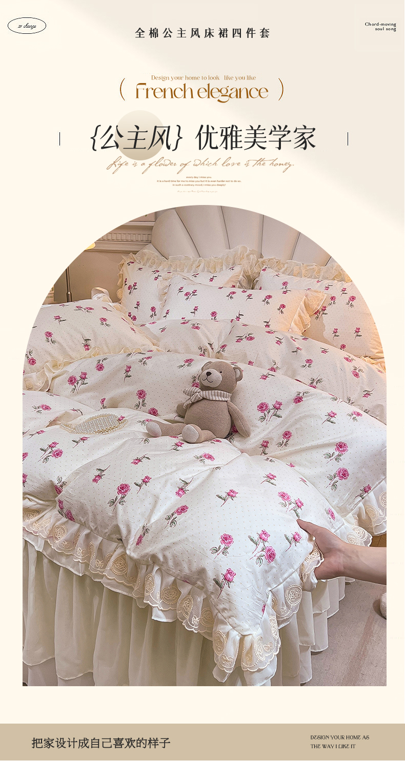 当前位置: 91家纺网 > 商品网购 > 床品套件 > 四件套 > 全棉普通四件套 > 恒爱家纺 2024新款梦幻情缘全棉公主风四件套 洛神