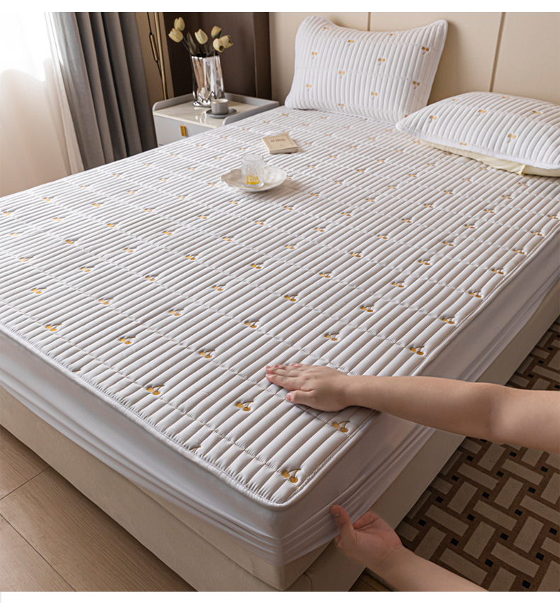 暖季家纺 2025新款磨毛刺绣款床笠 小樱桃-白