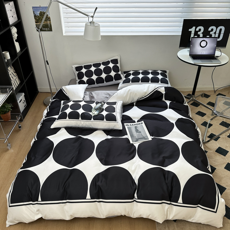 摩卡 2024春夏新品进口水洗真丝现代简约系列四件套 圆舞曲-白
