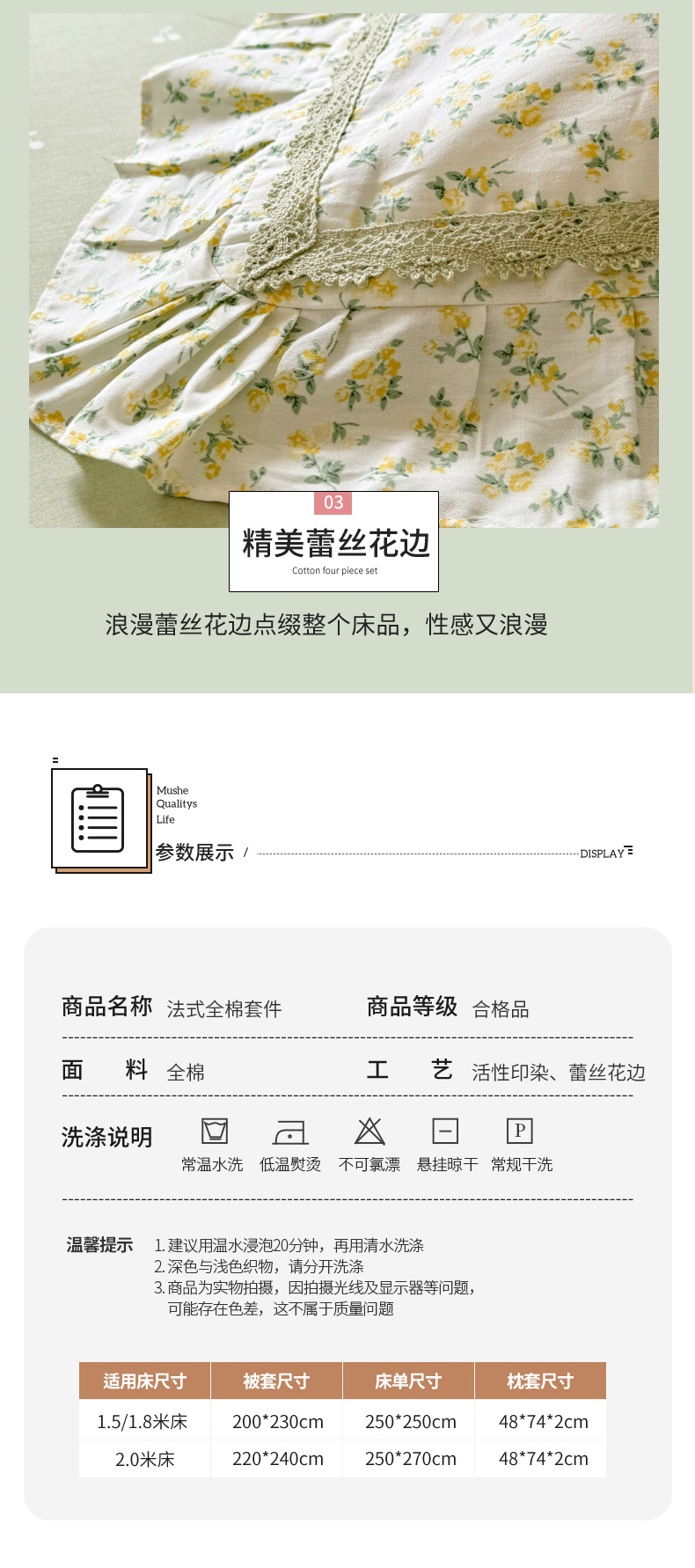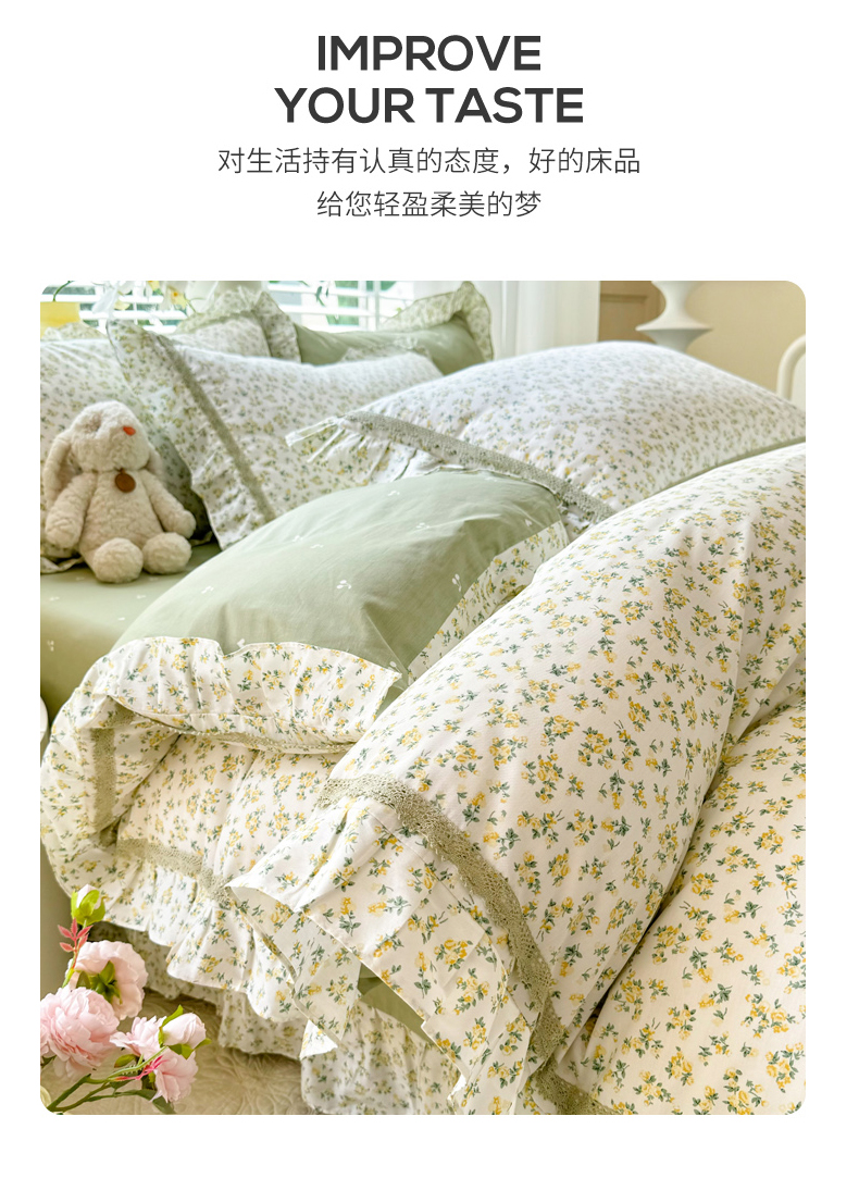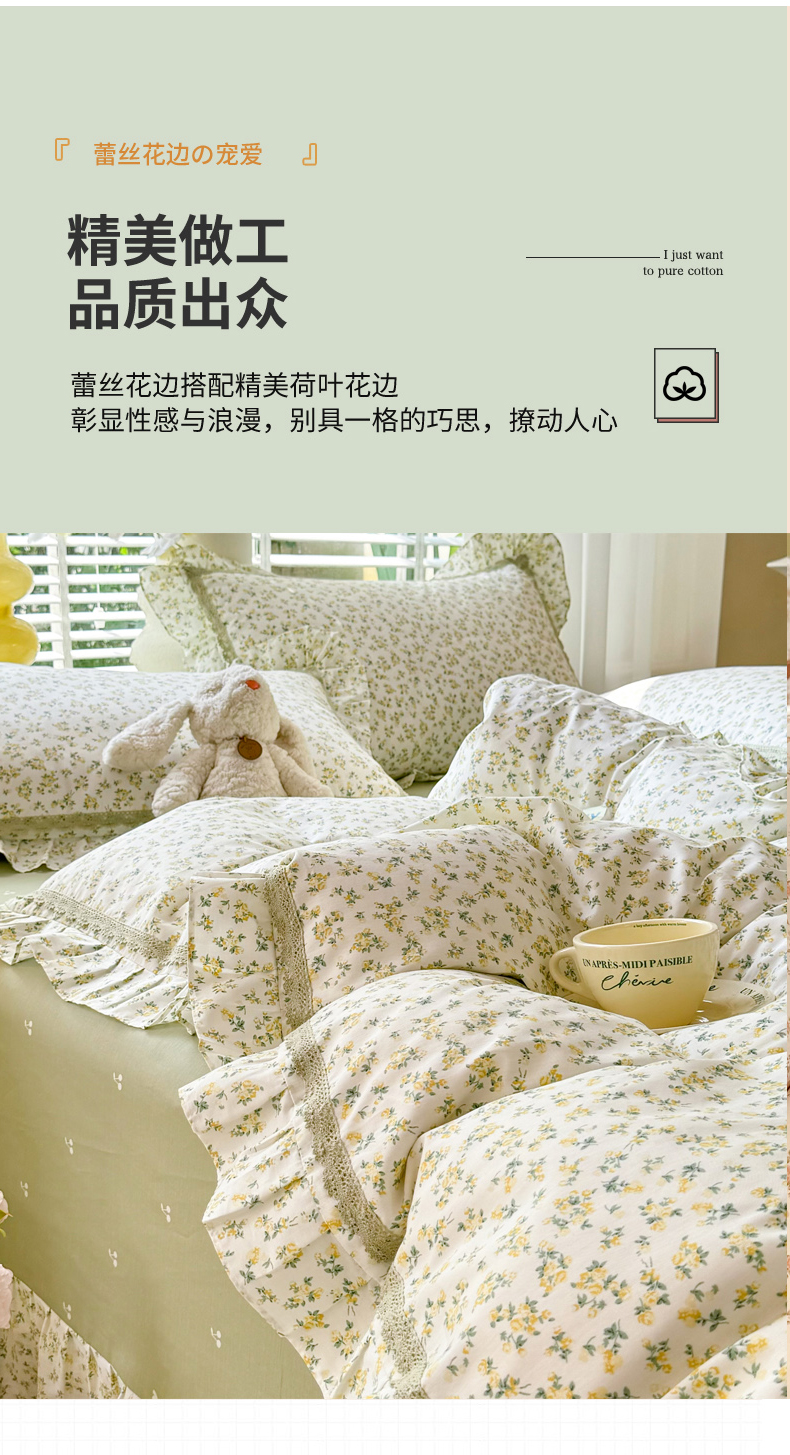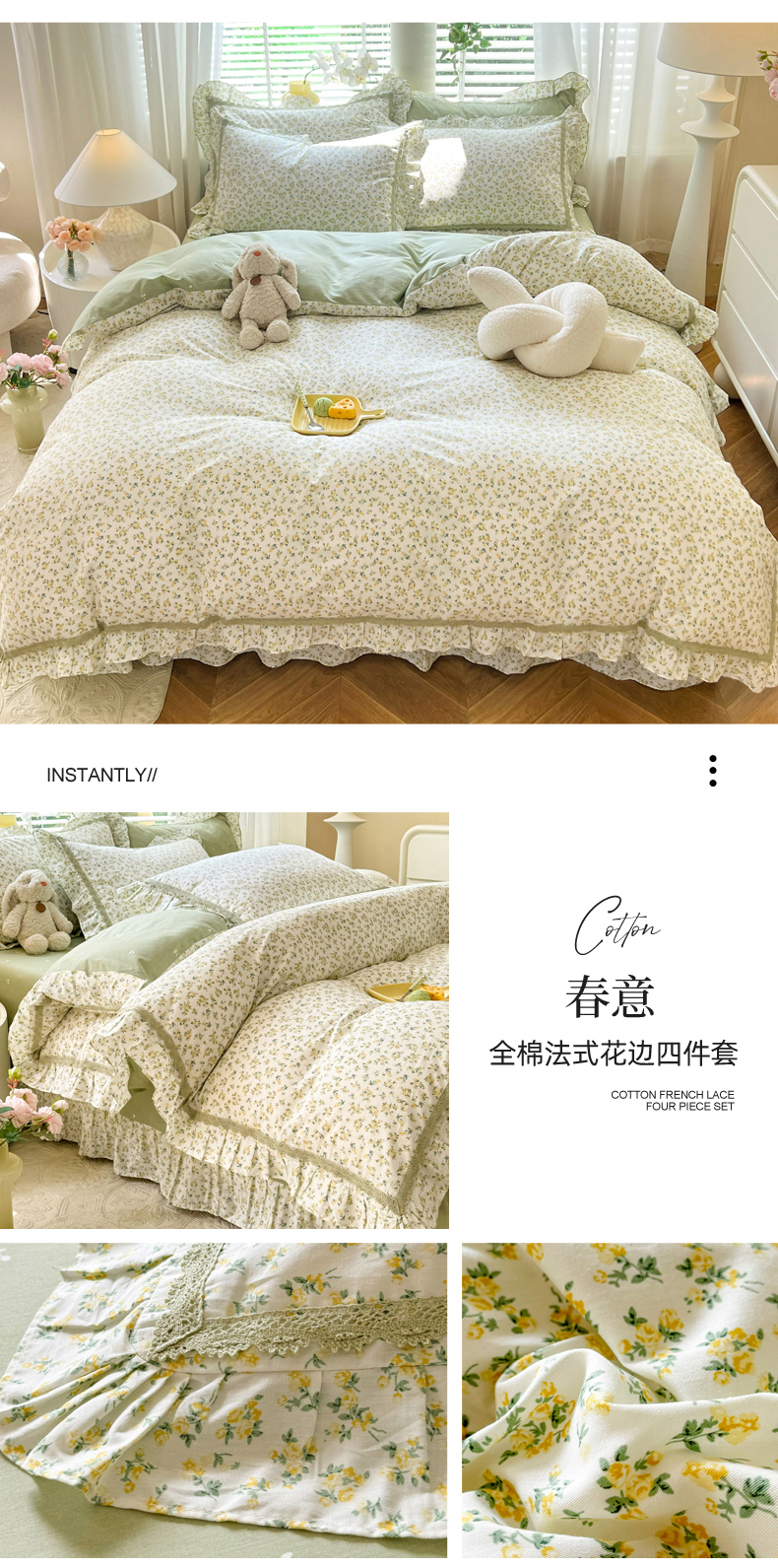 商品名称:艾唯希家纺 2024新款全棉法式花边四件套 春意