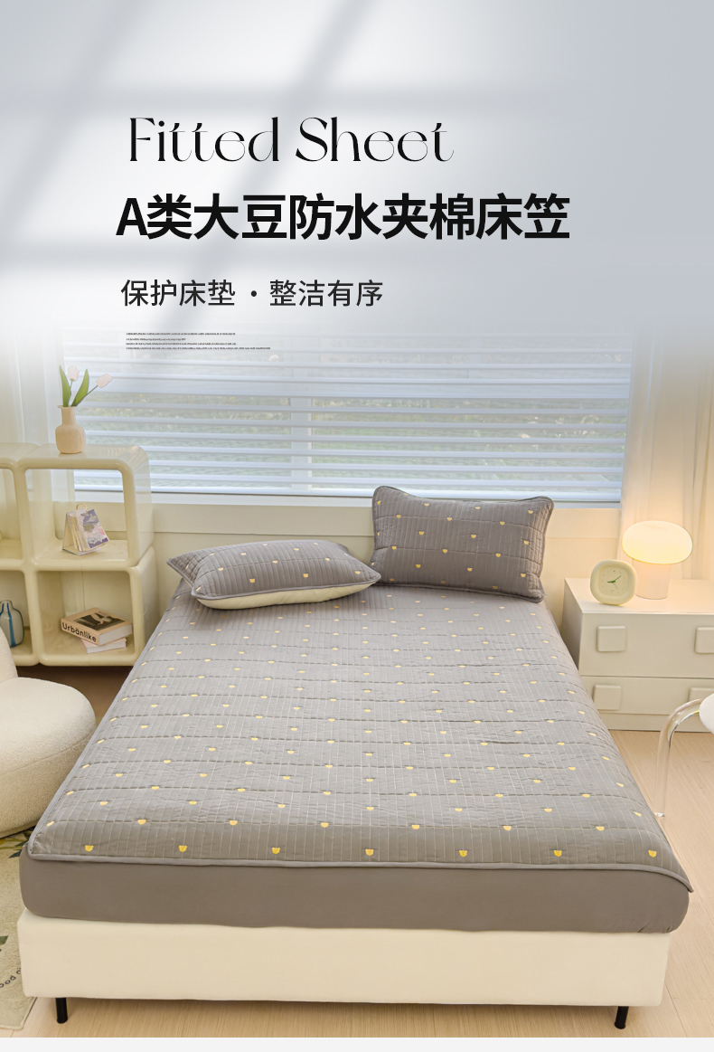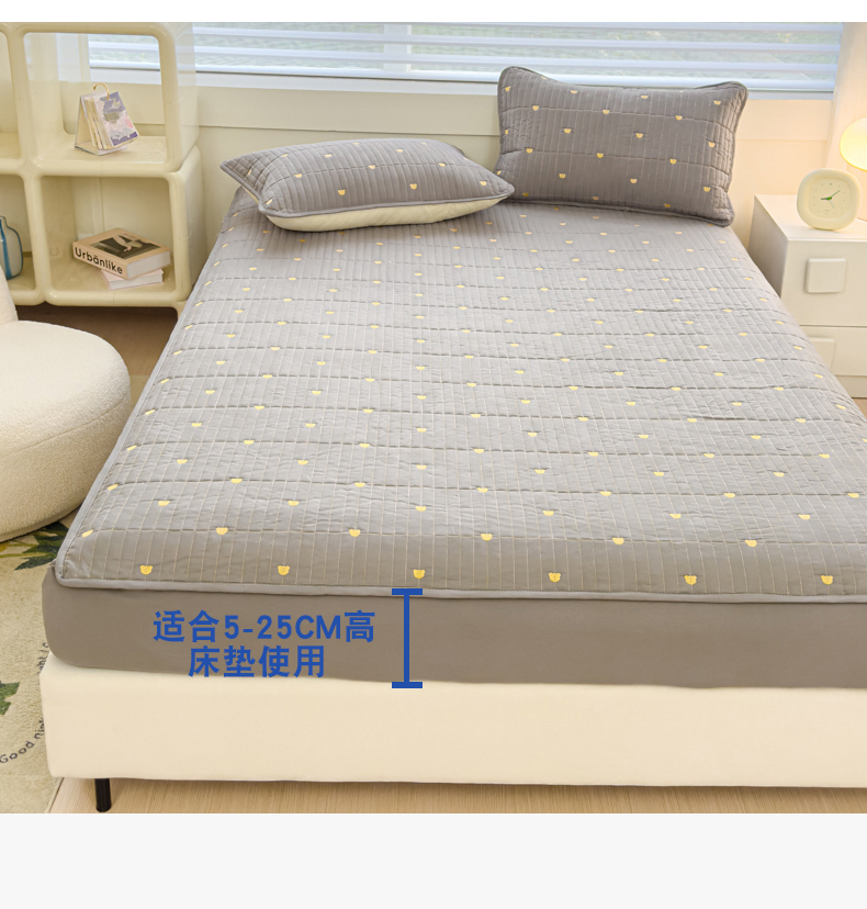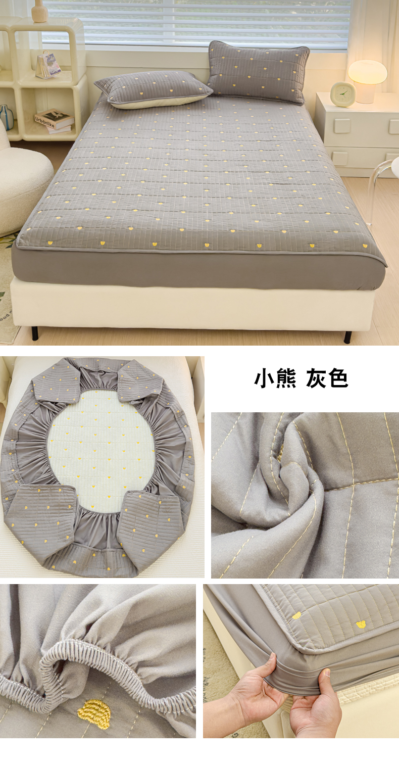 • 91家纺网 家纺一手货源 找家纺 金丝鸟家纺 2024新款2024新款A类磨毛大豆防水夹棉床笠-小熊 小熊 灰色