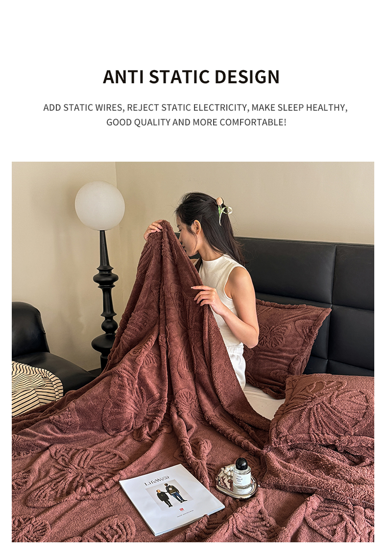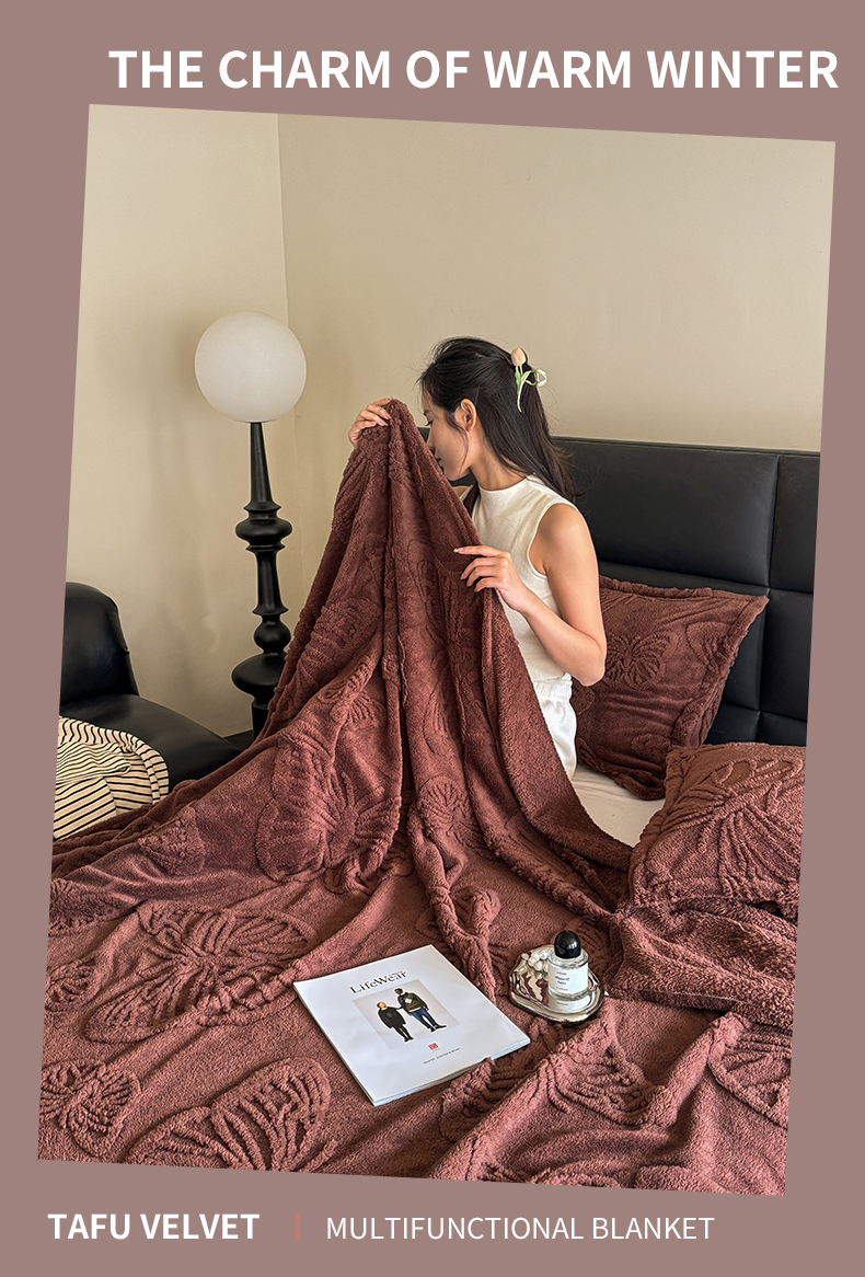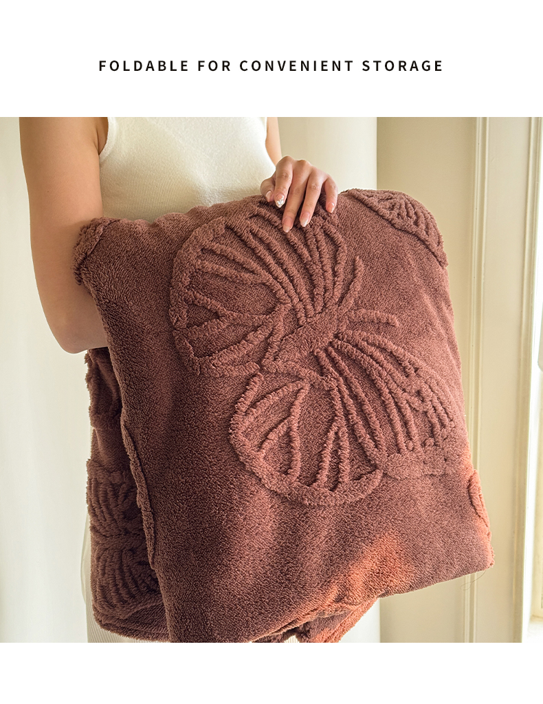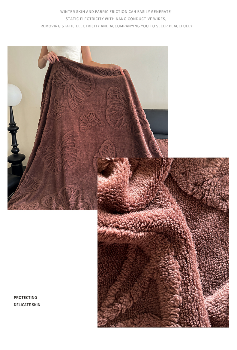 商品名称:2025款塔芙绒蝴蝶提花毛毯 纯色多功能休闲盖毯 爆款花型 电商/直播/外贸/跨境专供 蝴蝶棕