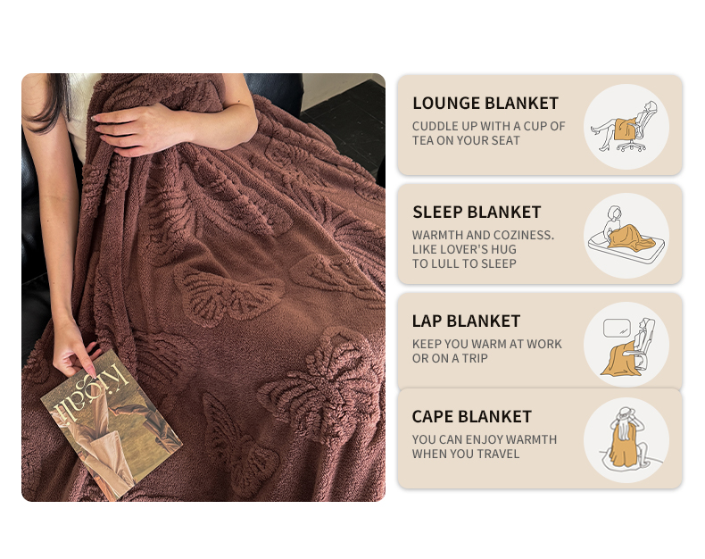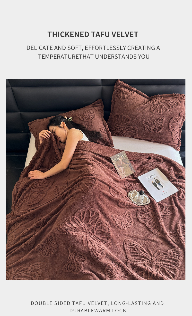2025款塔芙绒蝴蝶提花毛毯 纯色多功能休闲盖毯 爆款花型 电商/直播/外贸/跨境专供 蝴蝶棕