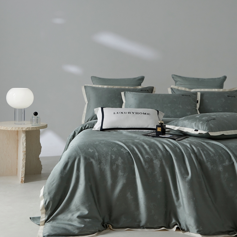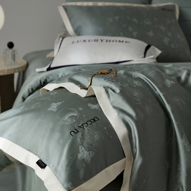 商品名称:安莱生活 2024新款60S天丝棉提花四件套-铂金摩卡 星辰-梦华绿