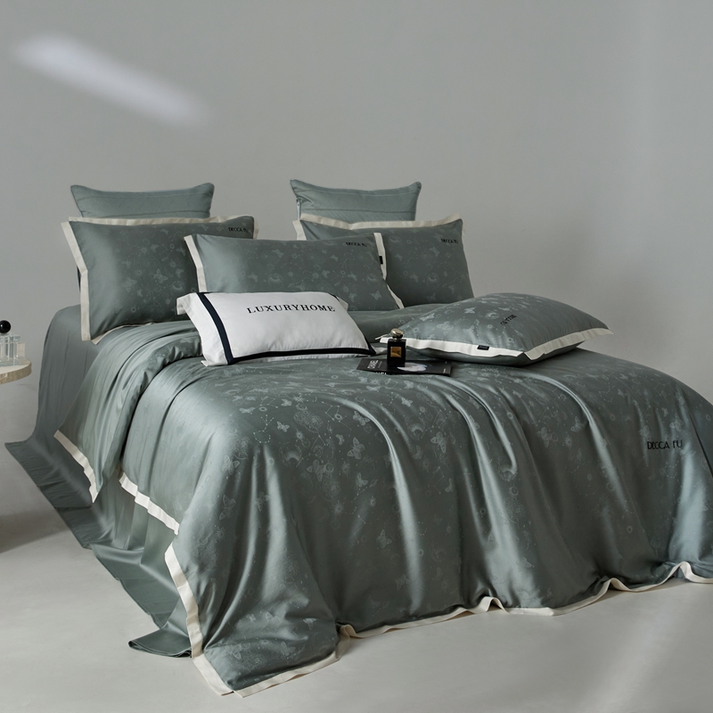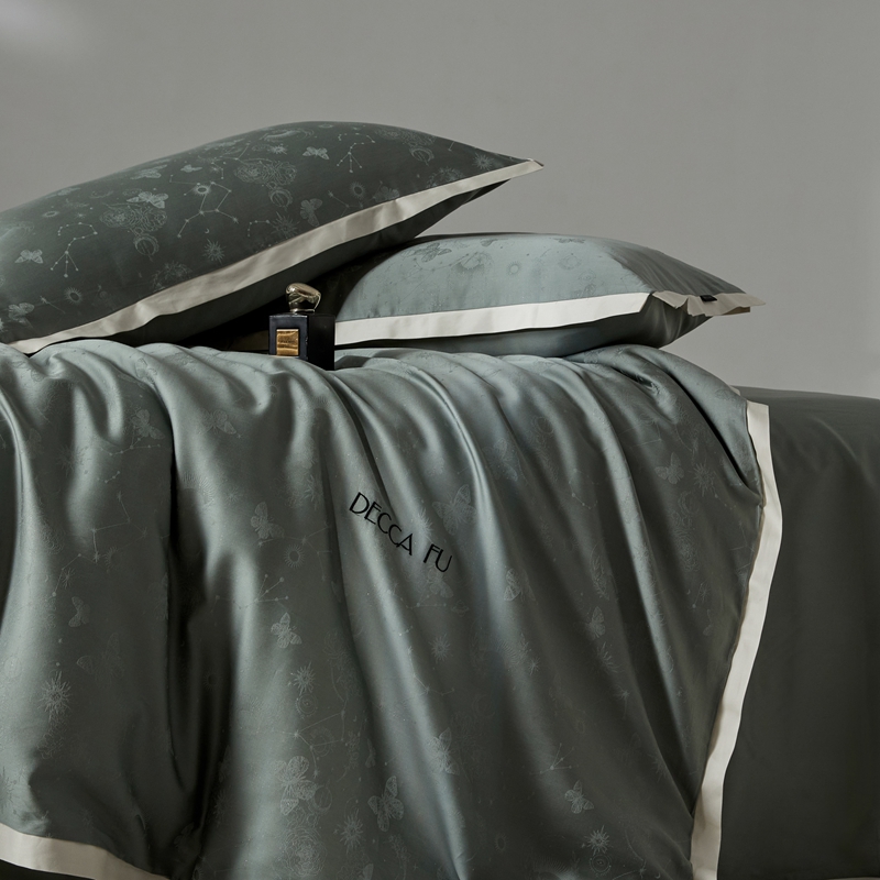 安莱生活 2024新款60S天丝棉提花四件套-铂金摩卡 星辰-梦华绿