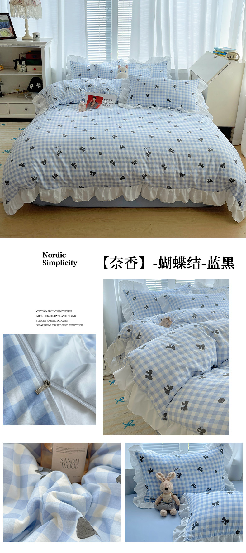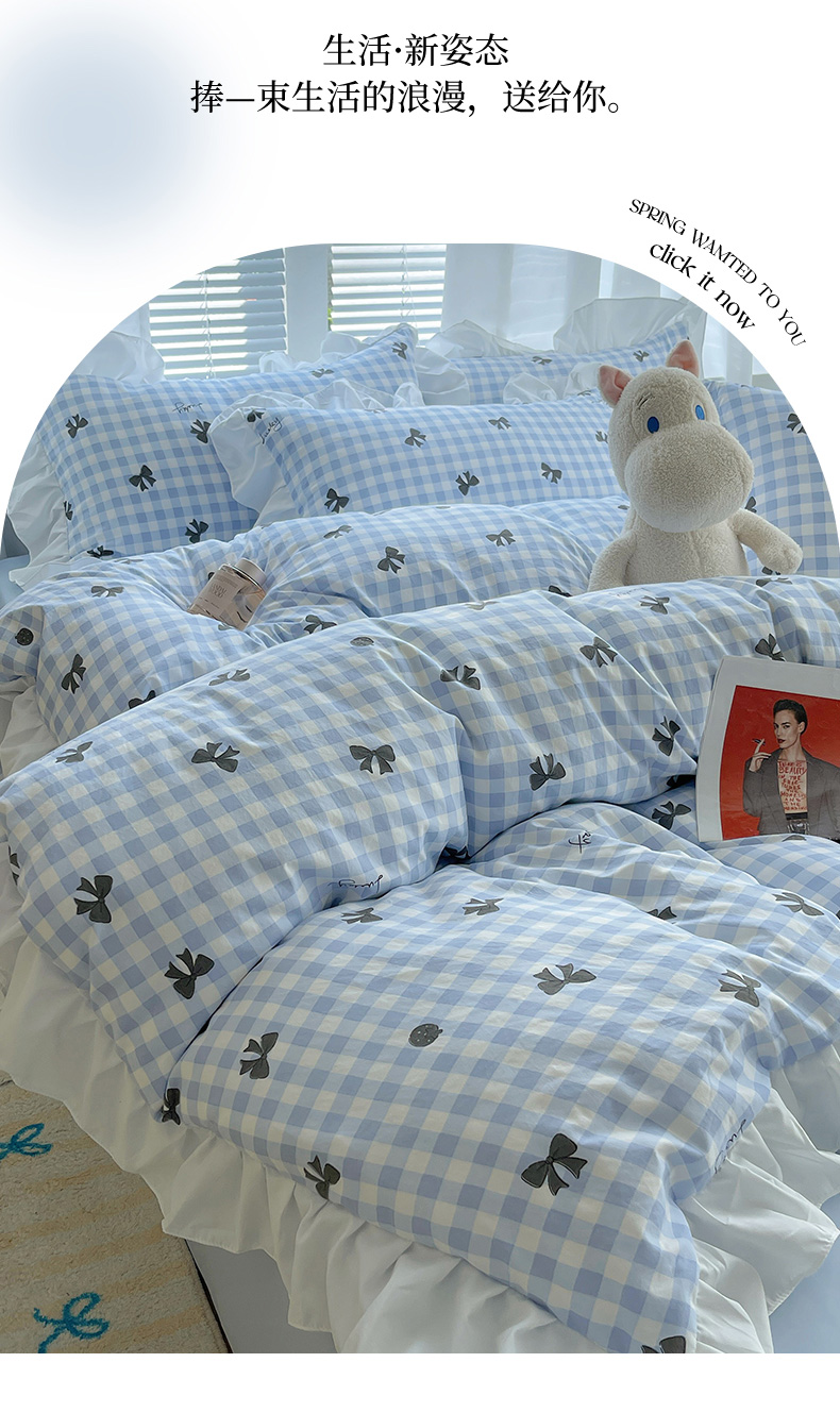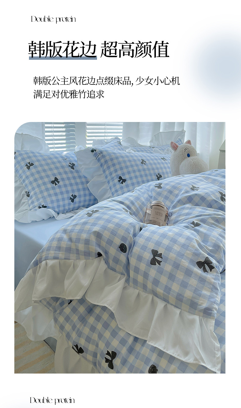 当前位置: 91家纺网 > 商品网购 > 床品套件 > 四件套 > 其它四件套 > 韩都家居 2024新款ins可爱风云朵棉韩系四件套【奈香】 【奈香】-蝴蝶结-蓝黑