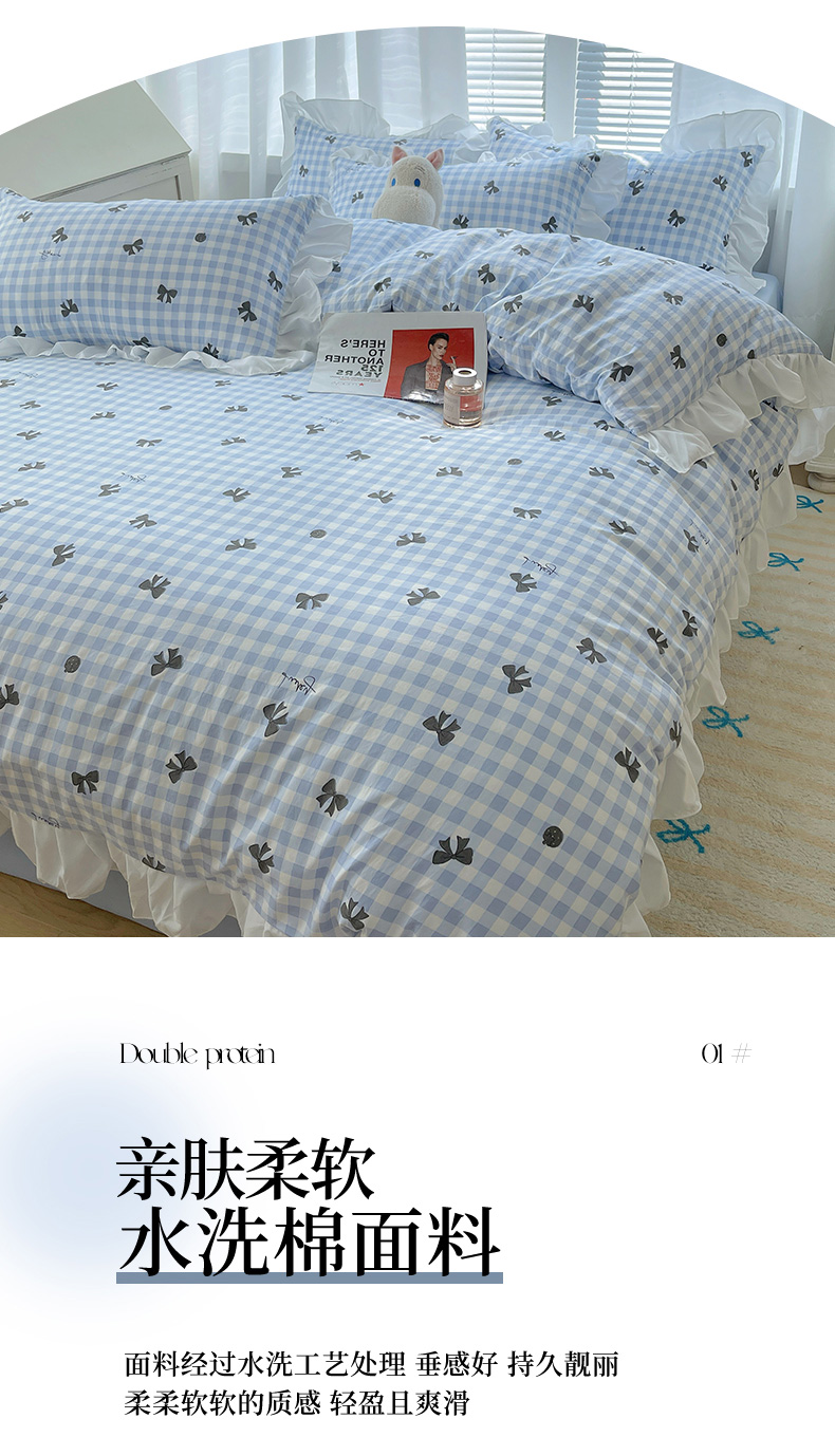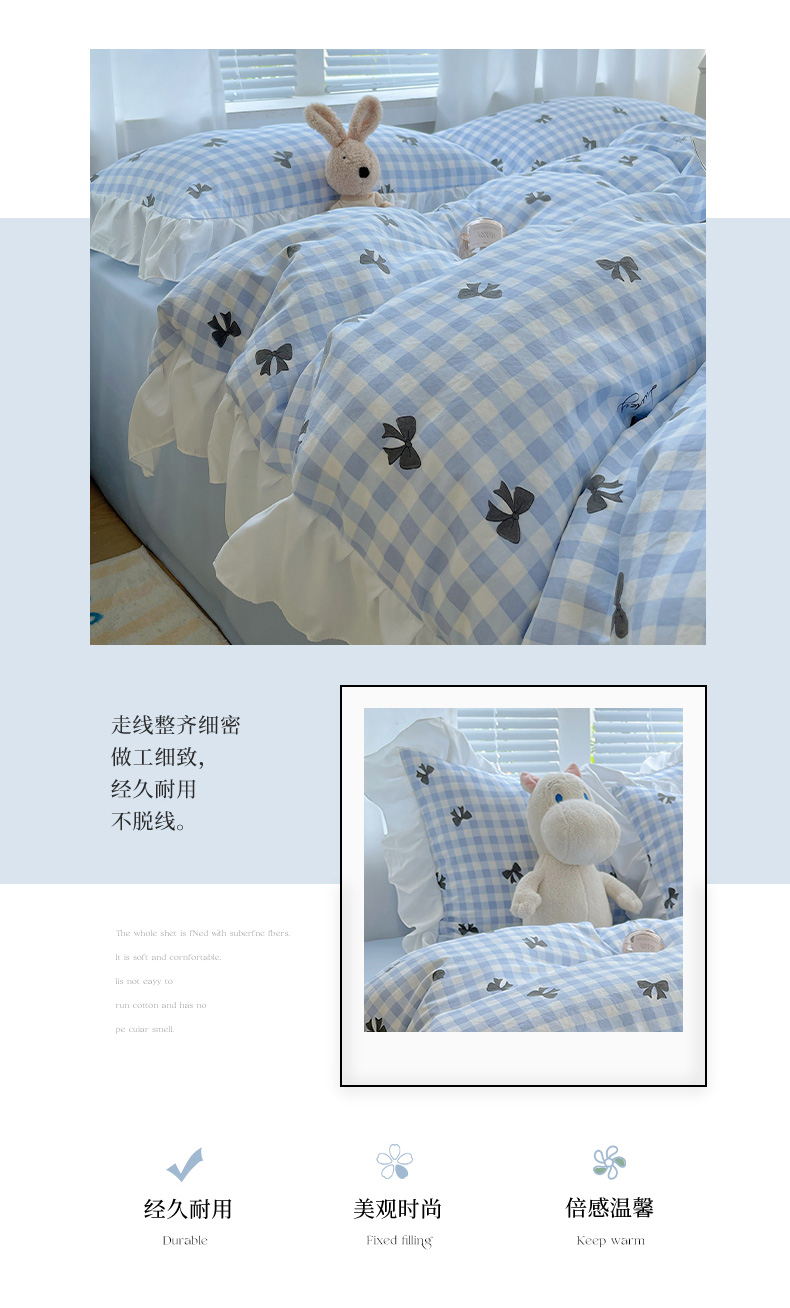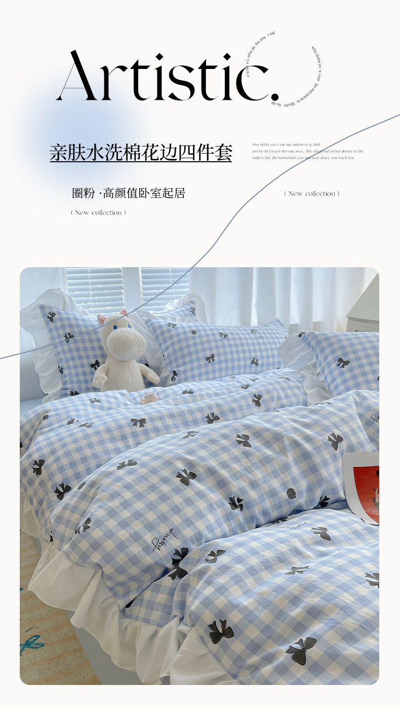 当前位置: 91家纺网 > 商品网购 > 床品套件 > 四件套 > 其它四件套 > 韩都家居 2024新款ins可爱风云朵棉韩系四件套【奈香】 【奈香】-蝴蝶结-蓝黑