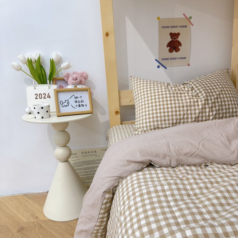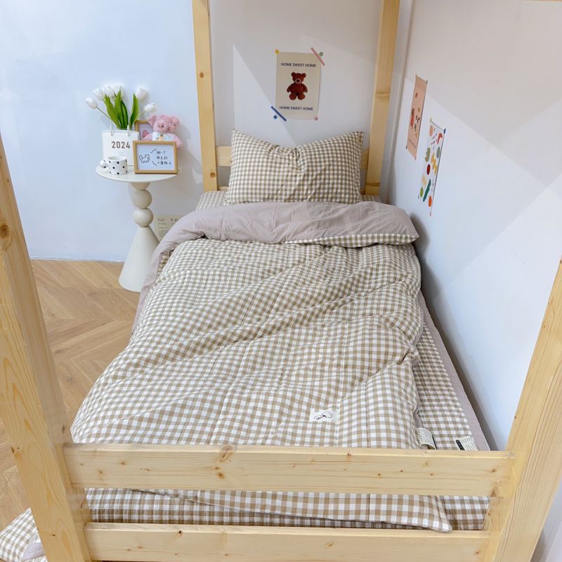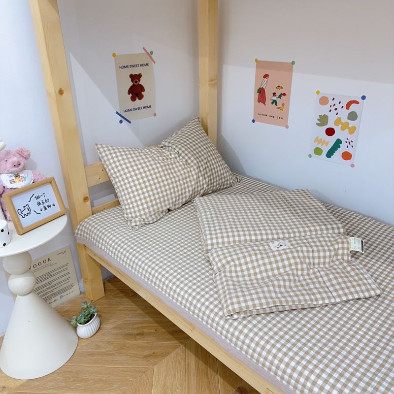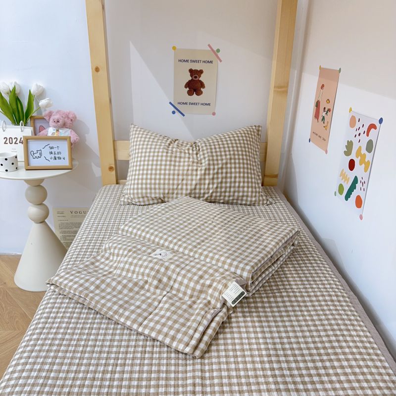 2024新款学生三件套多功能被套 水洗棉床盖 砂洗床盖 床盖三件套 咖小格