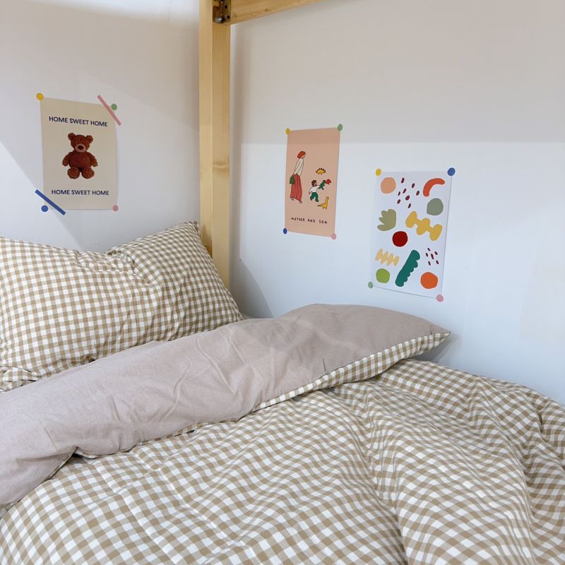 商品名称:2024新款学生三件套多功能被套 水洗棉床盖 砂洗床盖 床盖三件套 咖小格