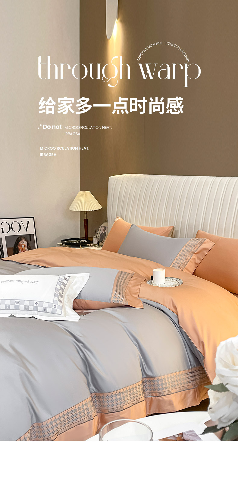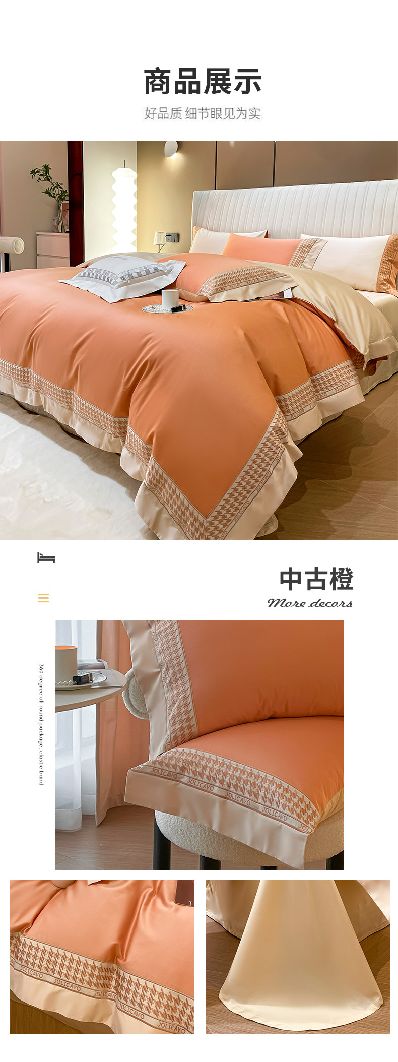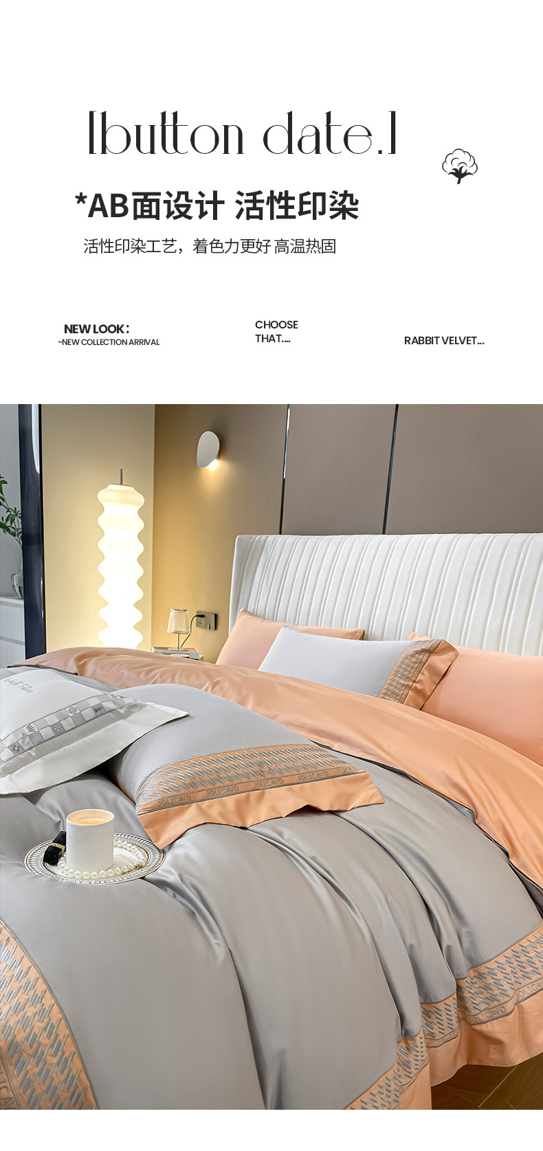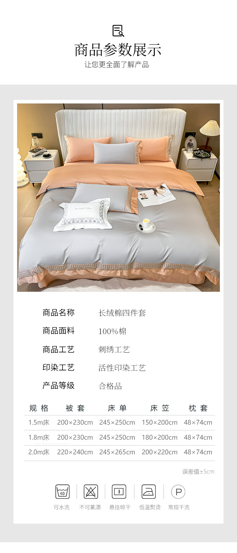 商品名称: 60支贡缎长绒棉四件套2023新款全棉纯棉千鸟格刺绣床单被套新疆棉100支床上用品床笠款 千鸟格-雾霾银