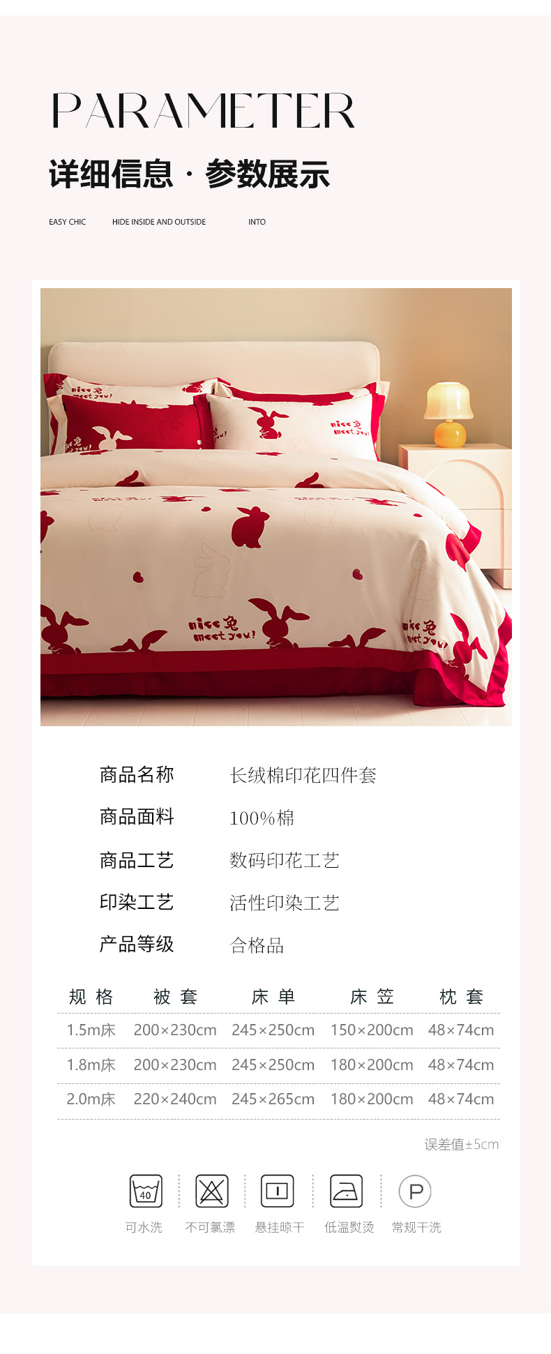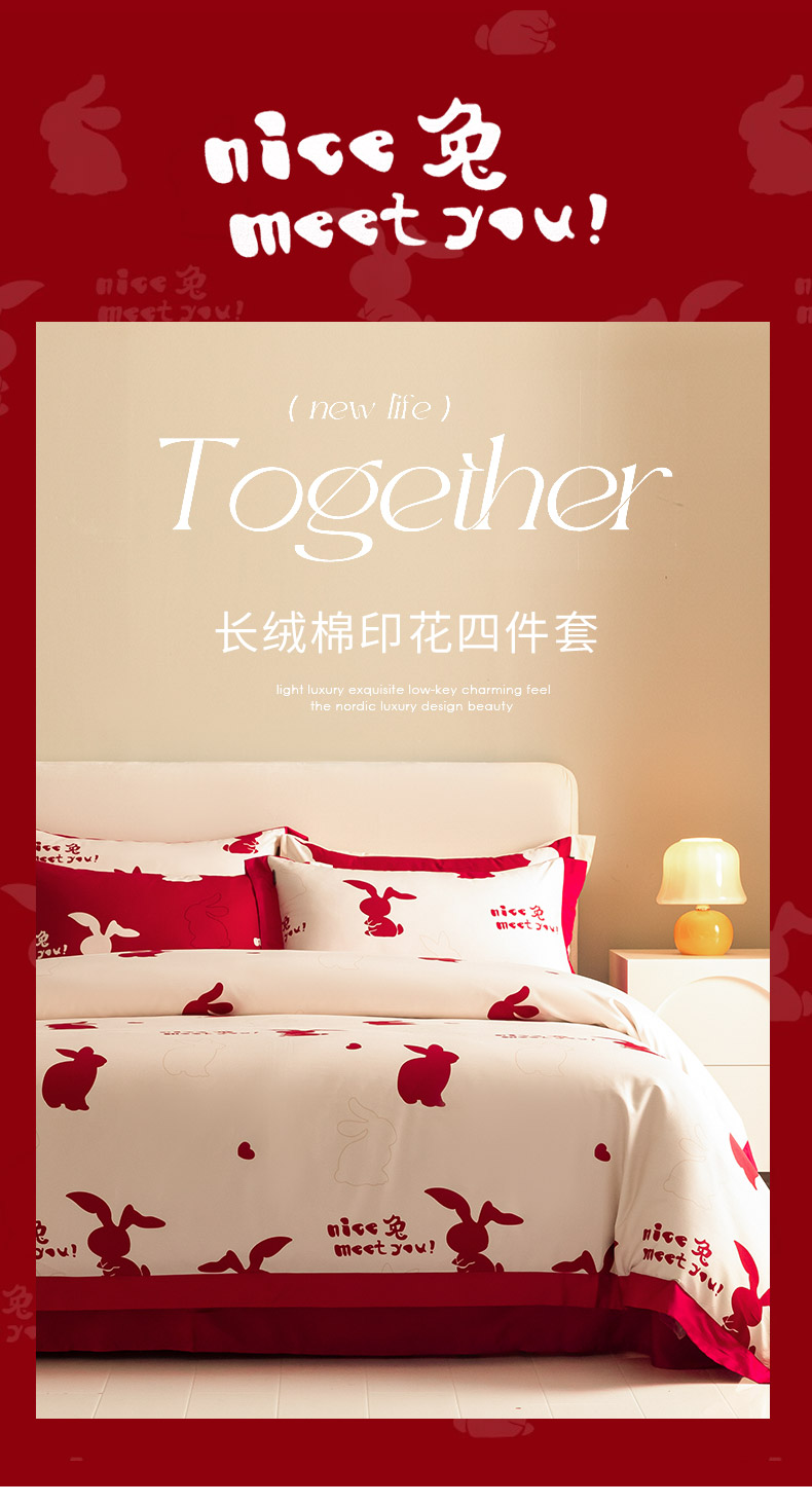 当前位置: 91家纺网 > 商品网购 > 床品套件 > 四件套 > 全棉普通四件套 > 【婚嫁新品】100支长绒棉四件套全棉纯棉北欧风印花床上用品轻奢风床笠款 nice兔 新妍玉
