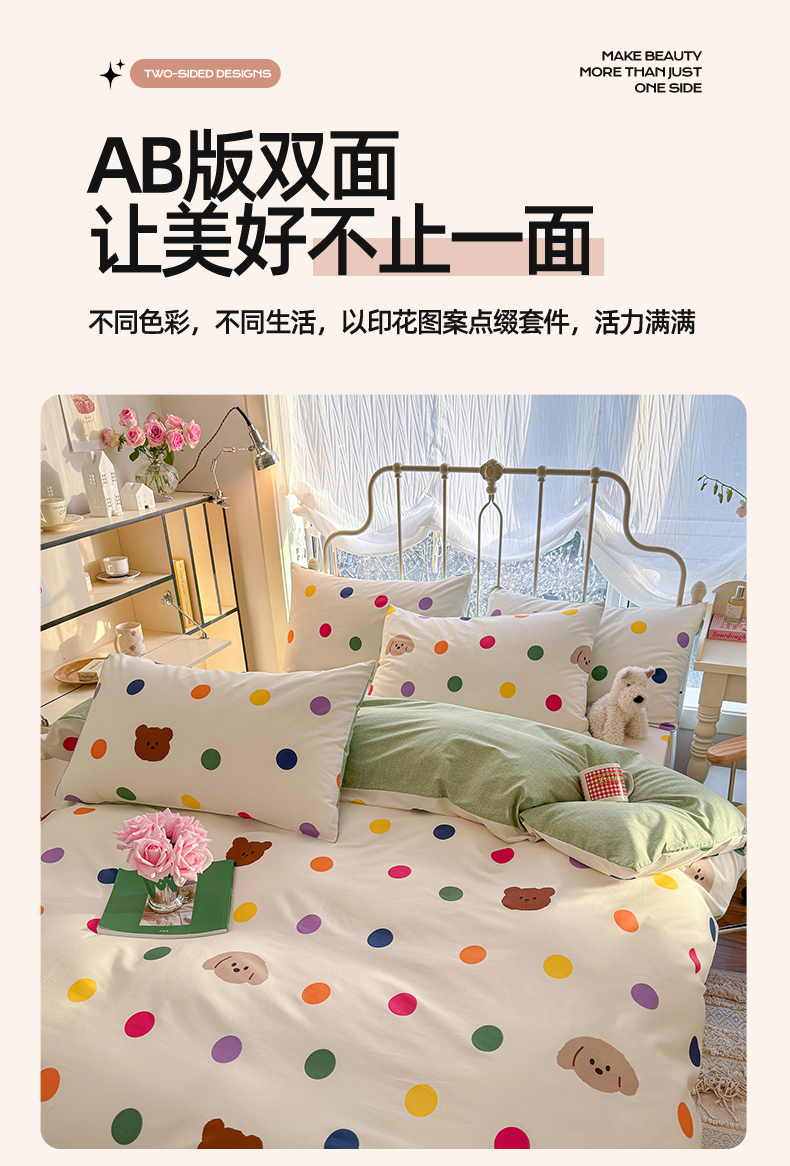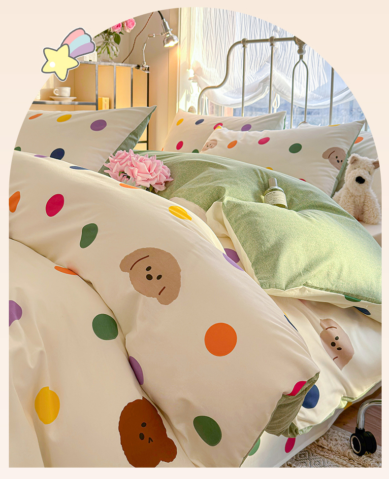 当前位置: 91家纺网 > 商品网购 > 床品套件 > 四件套 > 全棉普通四件套 > 名兮 2024新款全棉亲肤印花四件套 波点小熊