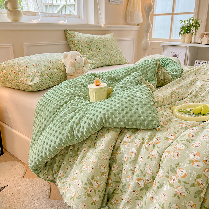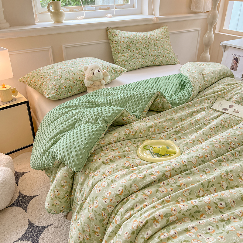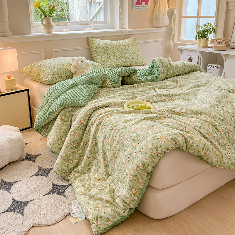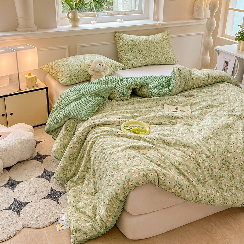 • 91家纺网 家纺一手货源 找家纺 居易简 2025新款水洗棉双层纱豆豆绒被被子被芯冬被春秋被豆豆被加绒直播  棉花絮语