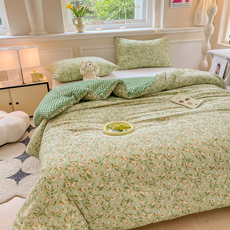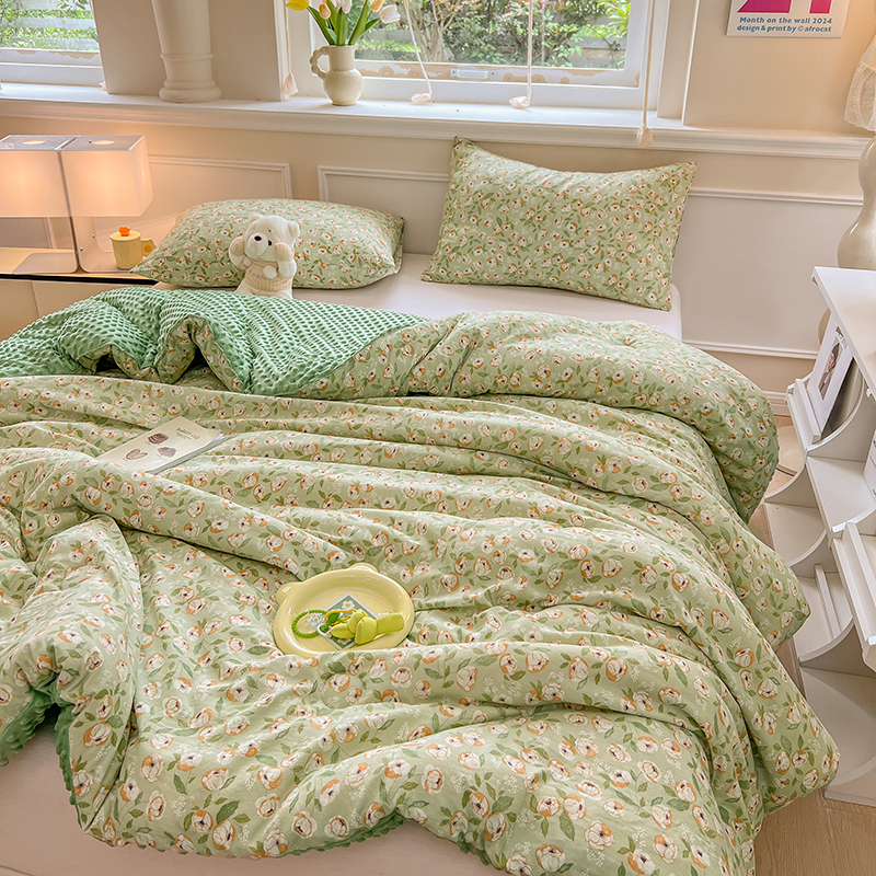 居易简 2025新款水洗棉双层纱豆豆绒被被子被芯冬被春秋被豆豆被加绒直播  棉花絮语
