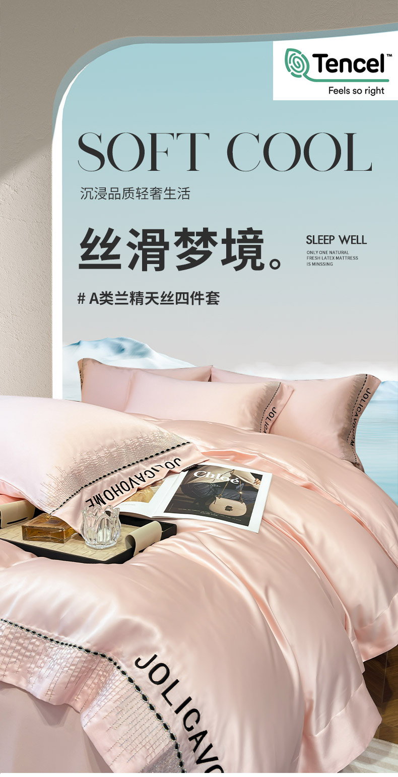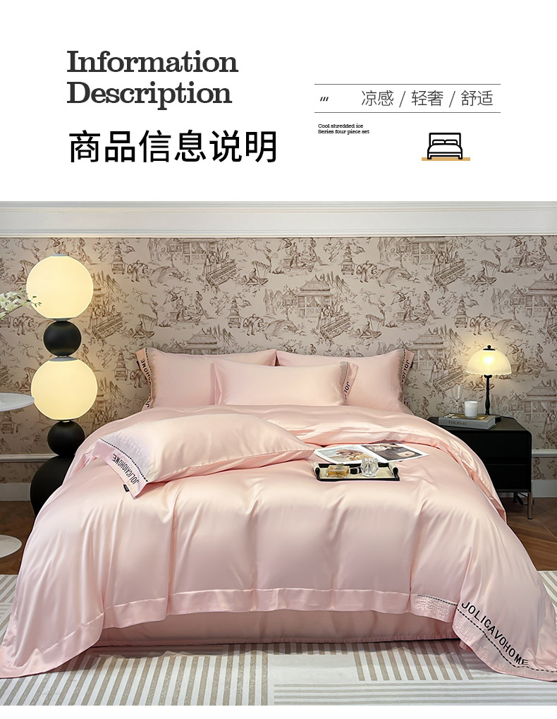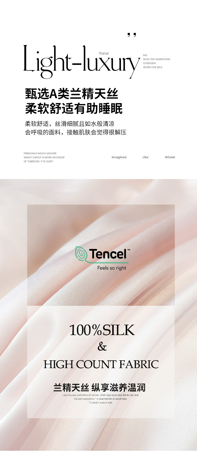 商品名称: 【A类兰精天丝】夏季丝滑真丝绸四件套凉感丝床单被套天丝棉床笠款冰丝裸睡床上用品 兰溪-樱花粉