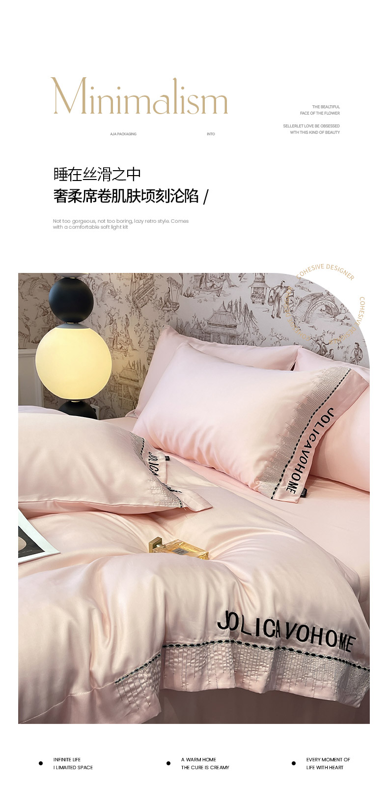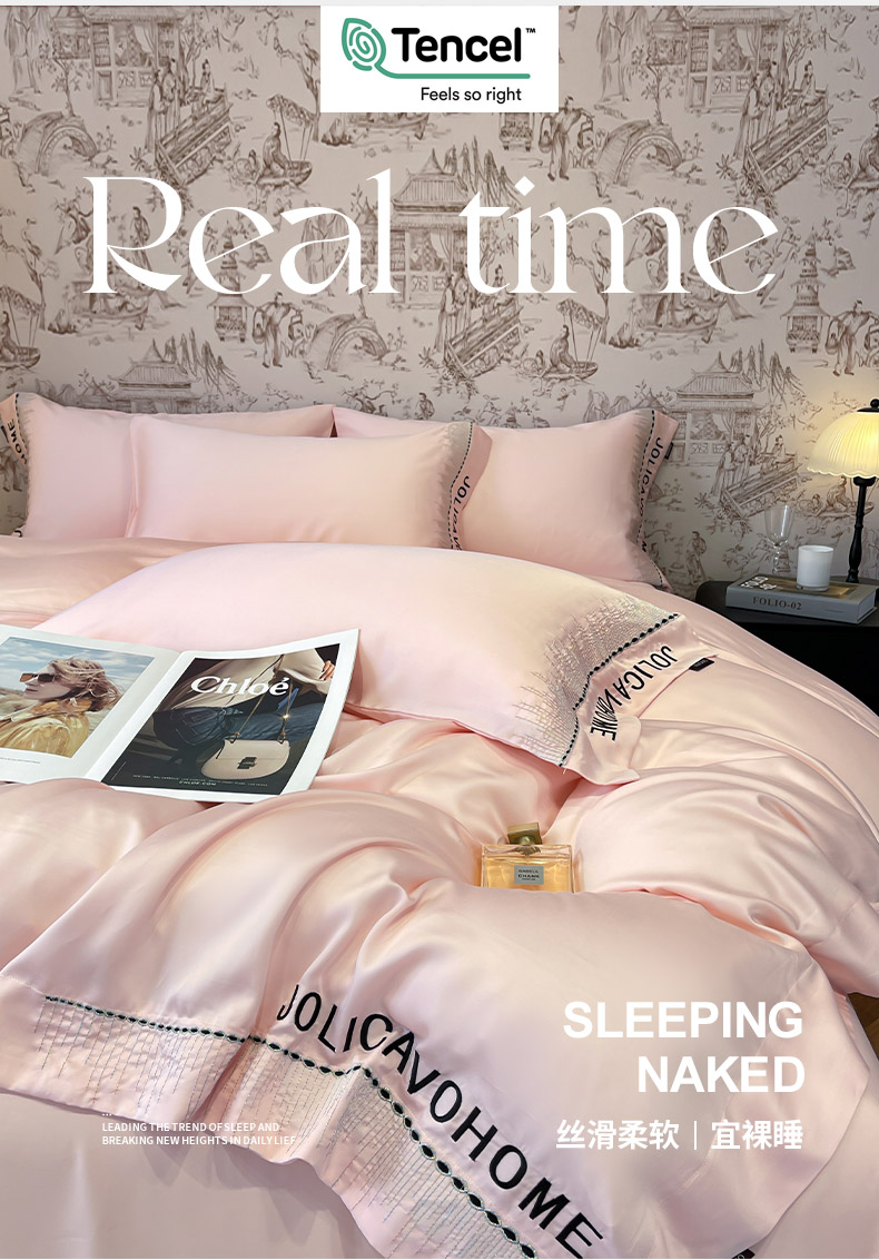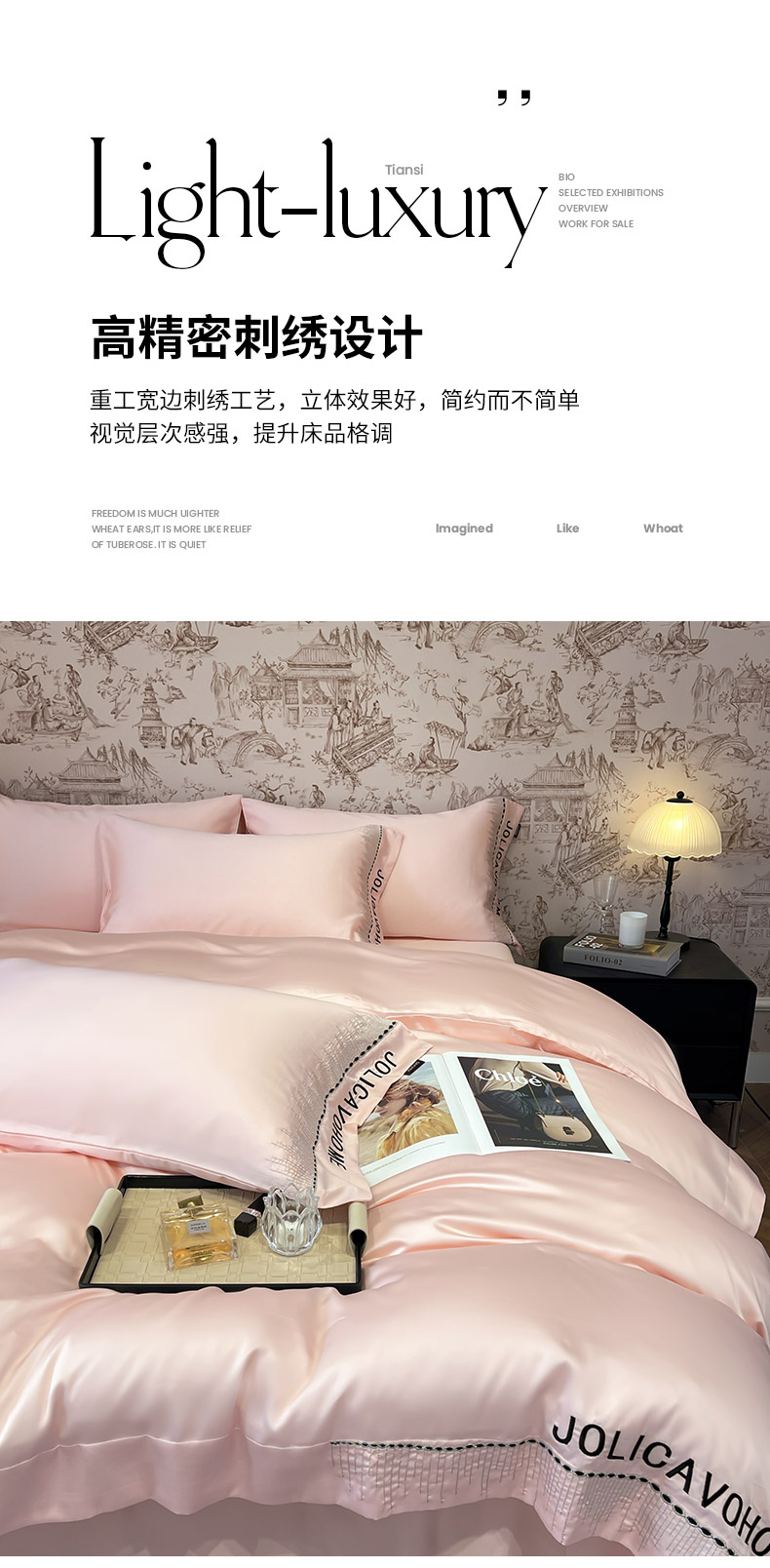 商品名称: 【A类兰精天丝】夏季丝滑真丝绸四件套凉感丝床单被套天丝棉床笠款冰丝裸睡床上用品 兰溪-樱花粉