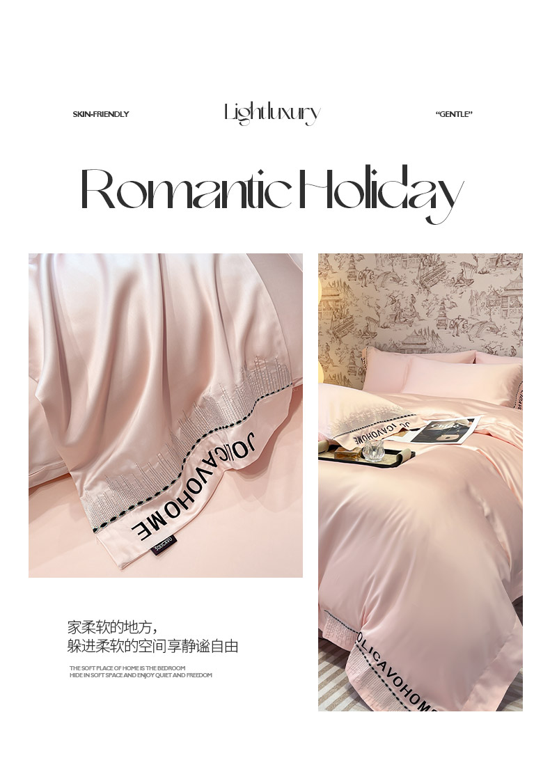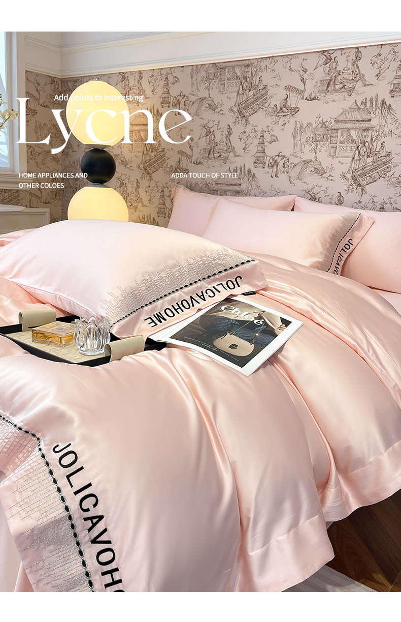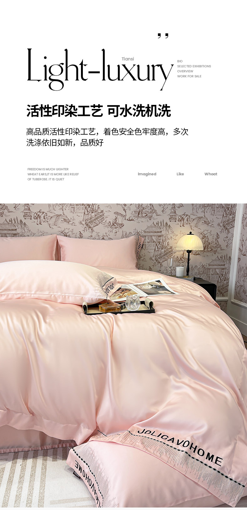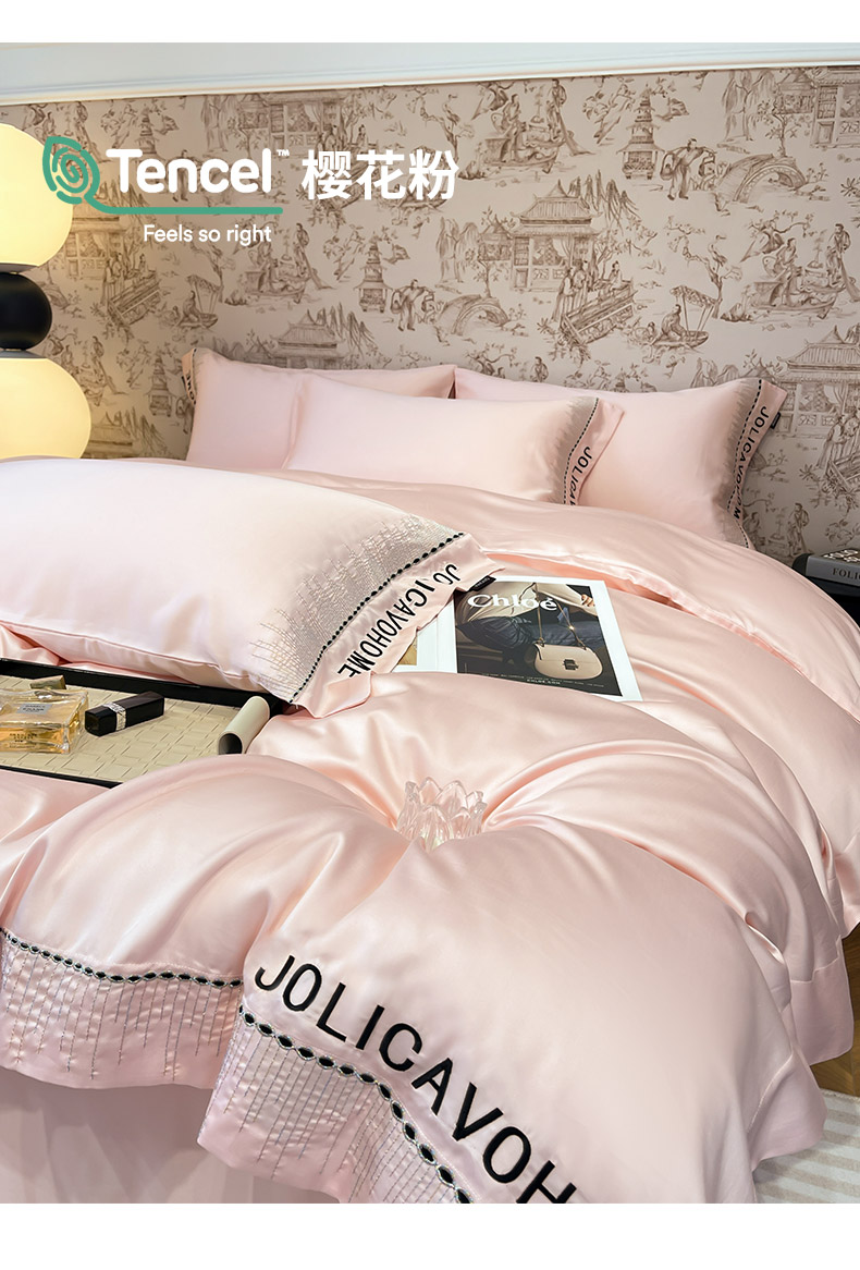 【A类兰精天丝】夏季丝滑真丝绸四件套凉感丝床单被套天丝棉床笠款冰丝裸睡床上用品 兰溪-樱花粉