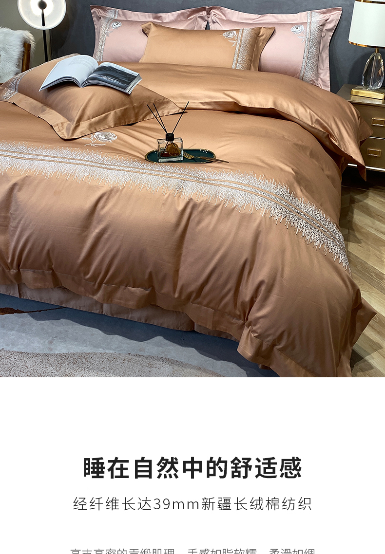 当前位置: 91家纺网 > 商品网购 > 床品套件 > 四件套 > 长绒棉四件套 > 美娘阁2025新款双股长绒棉居家款四件套 简爱(金驼)