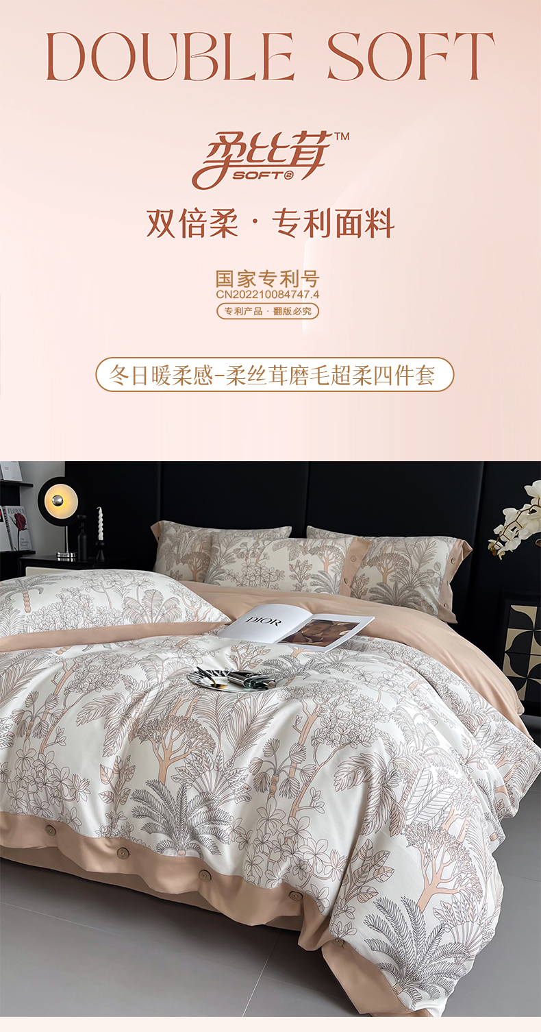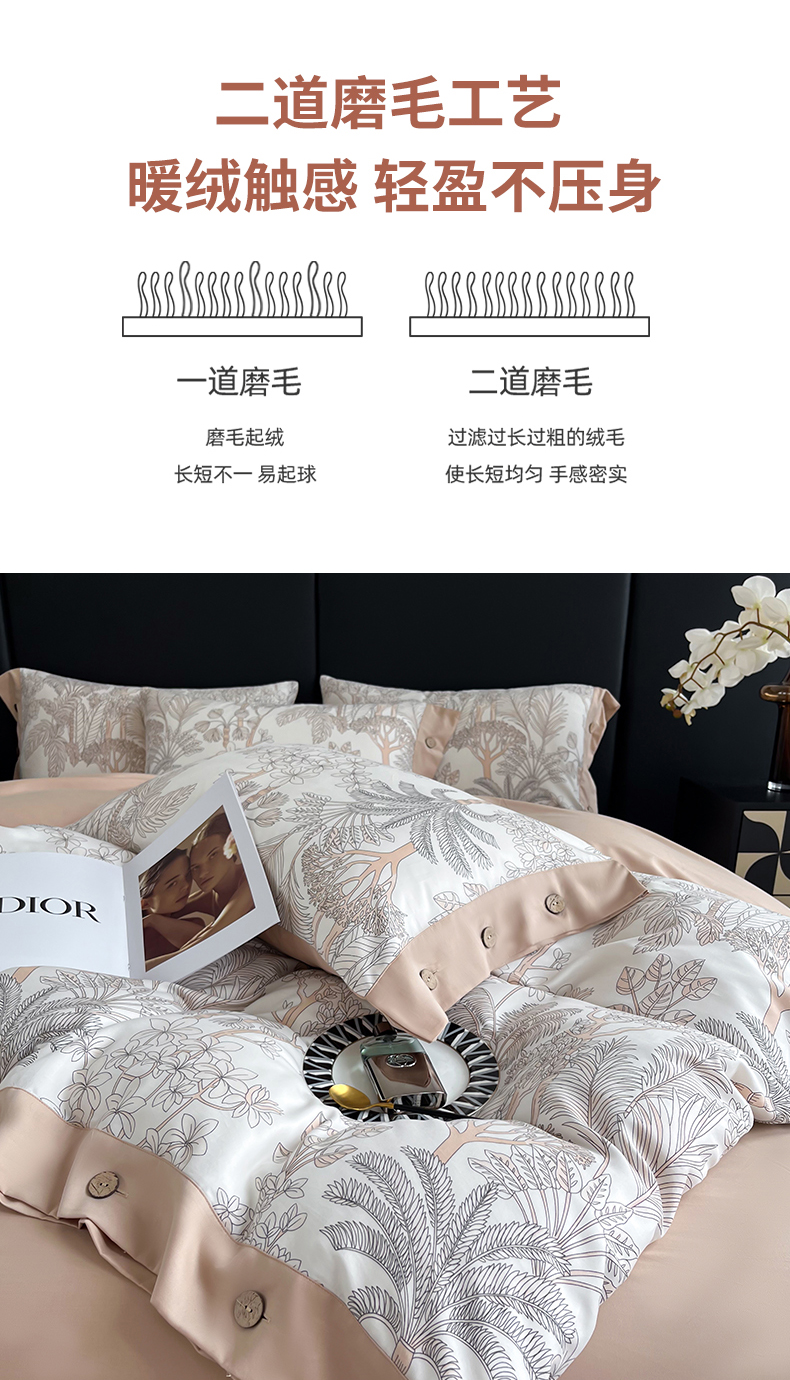 当前位置: 91家纺网 > 商品网购 > 床品套件 > 四件套 > 普通磨毛四件套 > 艾迪尚家纺 2025新款柔丝茸磨毛印花纽扣款四件套 雾岛-米