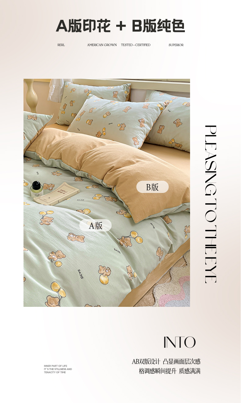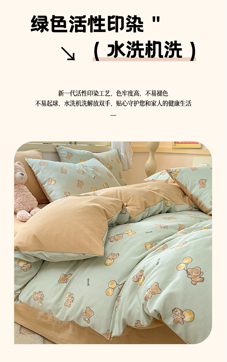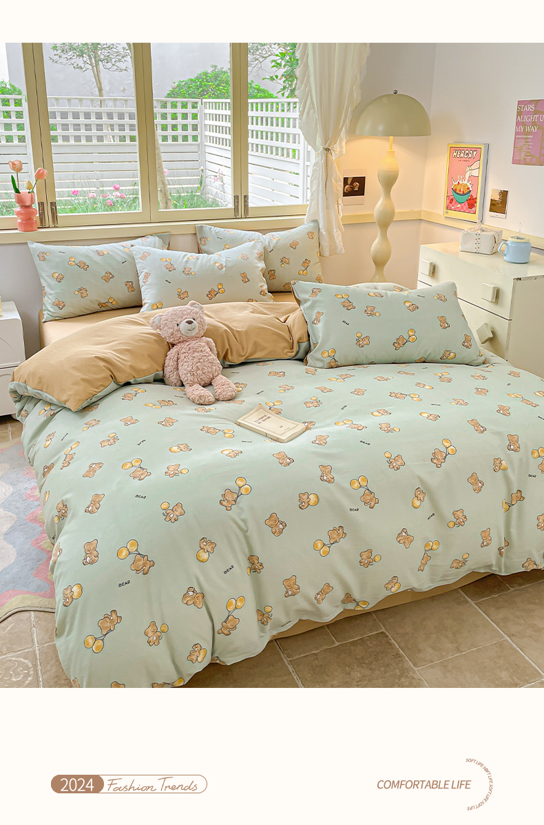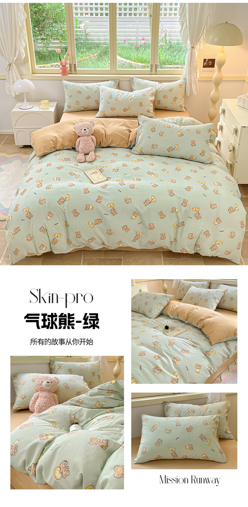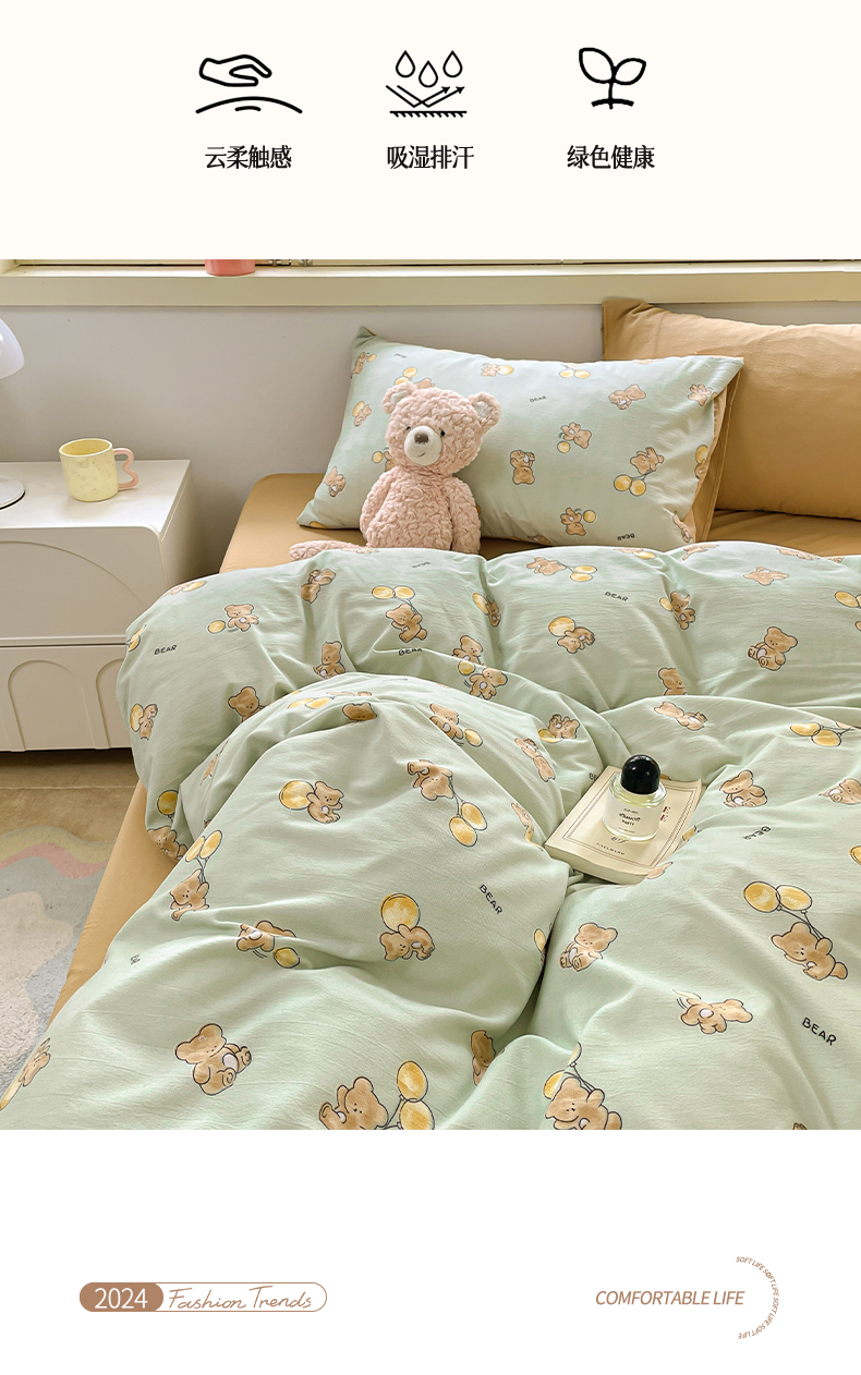 当前位置: 91家纺网 > 商品网购 > 床品套件 > 四件套 > 全棉普通四件套 > 玉海棠 2024新款AB版软糯针织棉印花四件套 气球熊-绿-