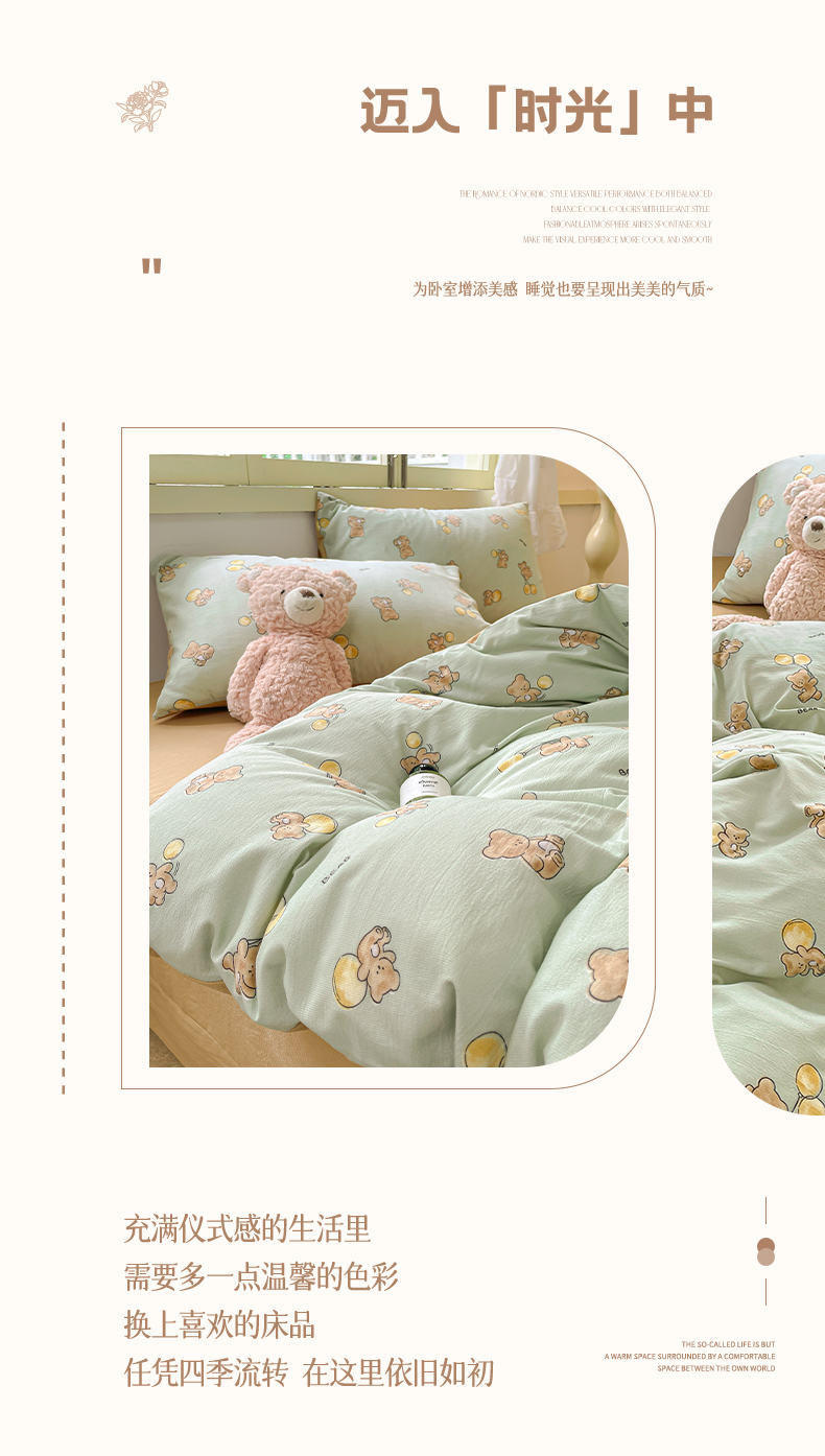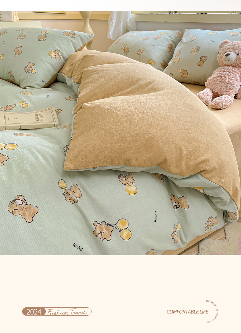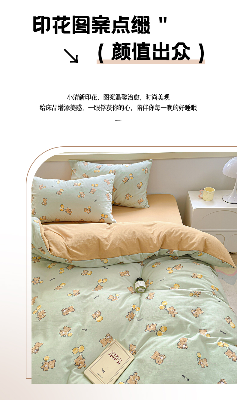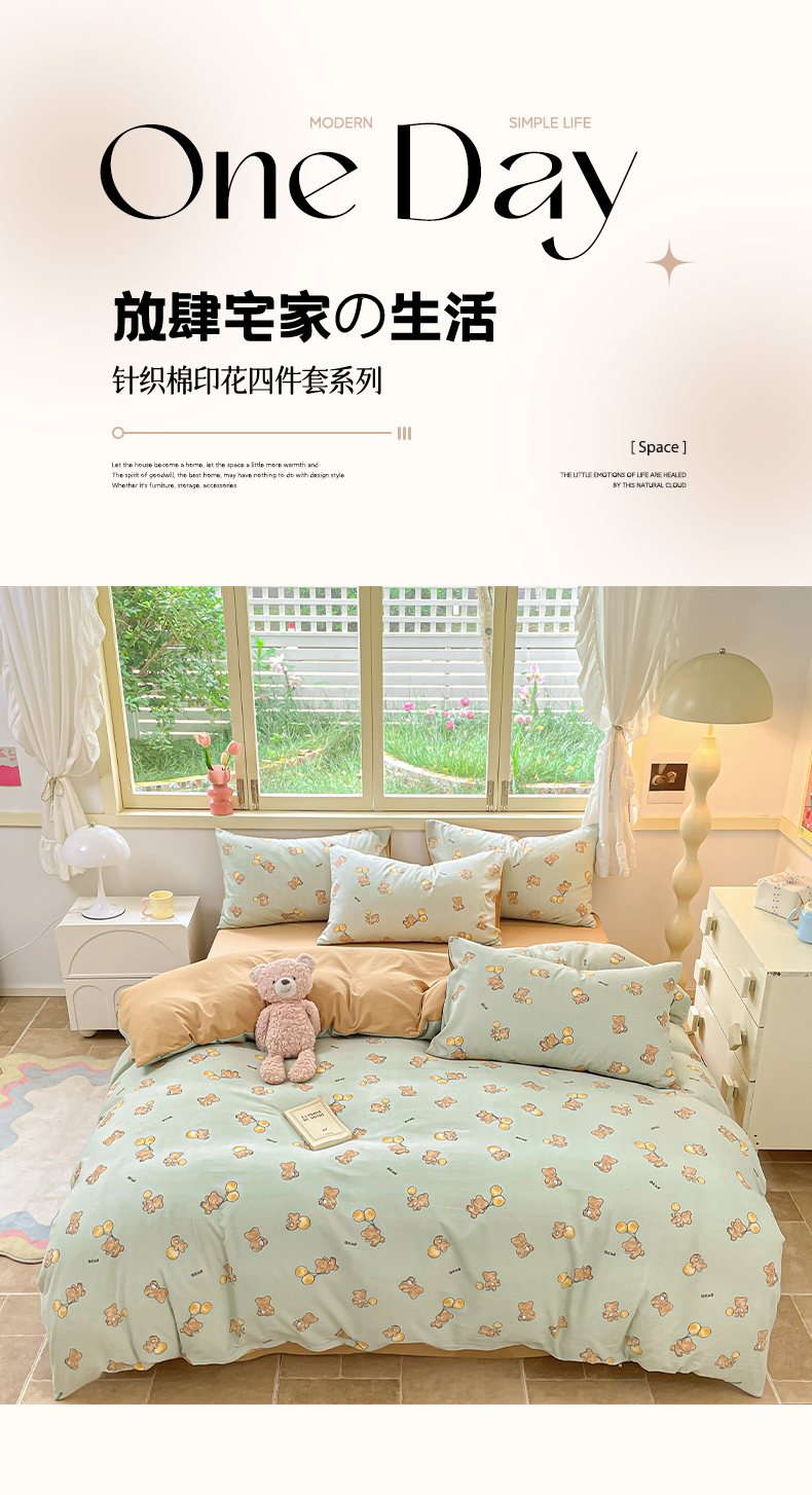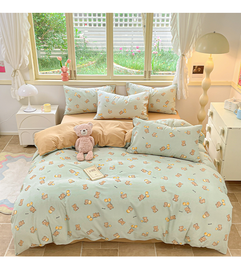当前位置: 91家纺网 > 商品网购 > 床品套件 > 四件套 > 全棉普通四件套 > 玉海棠 2024新款AB版软糯针织棉印花四件套 气球熊-绿-