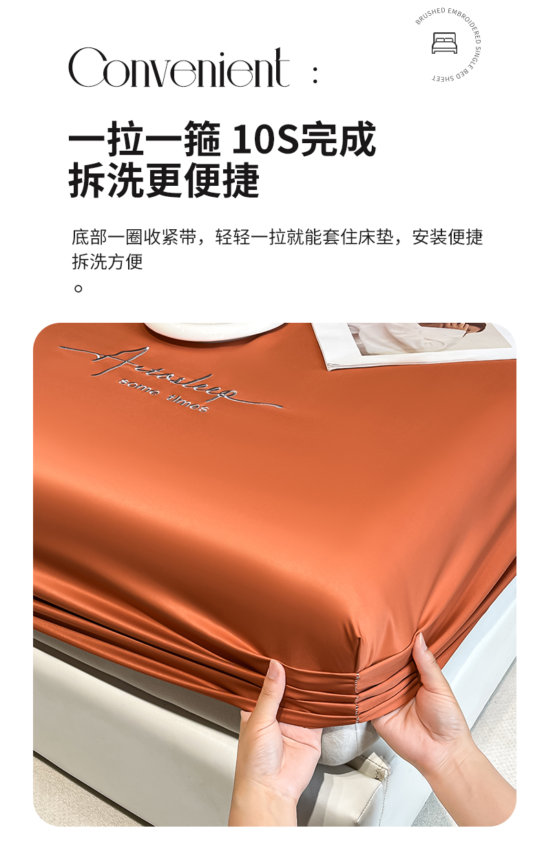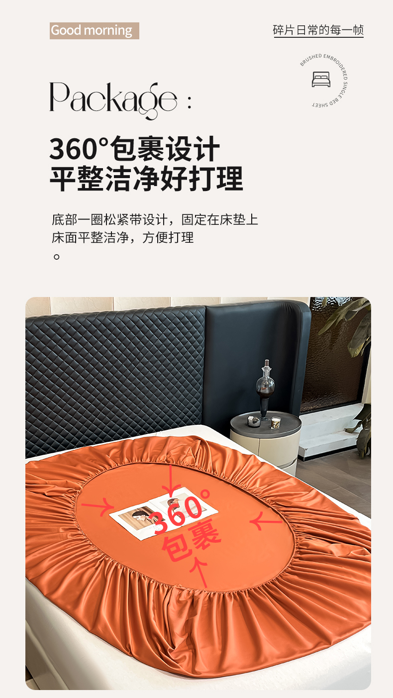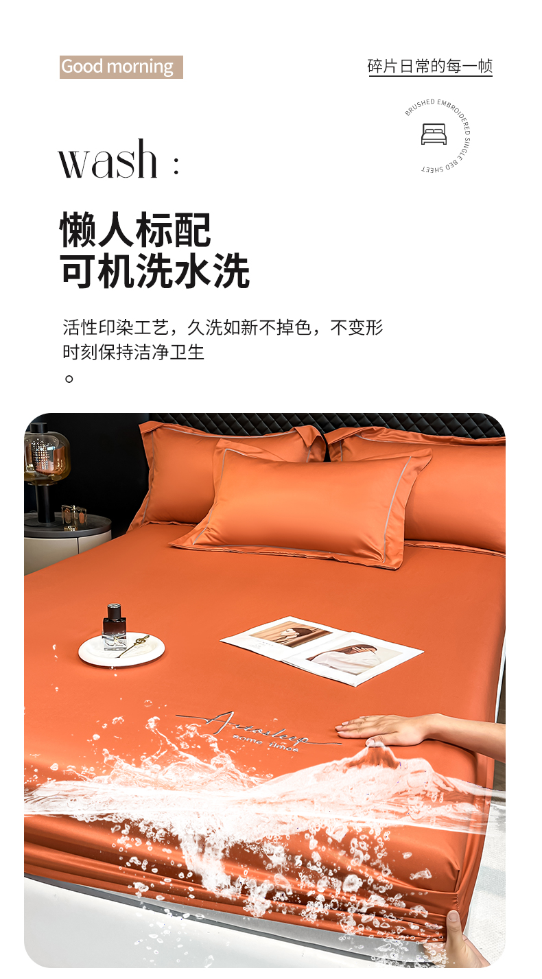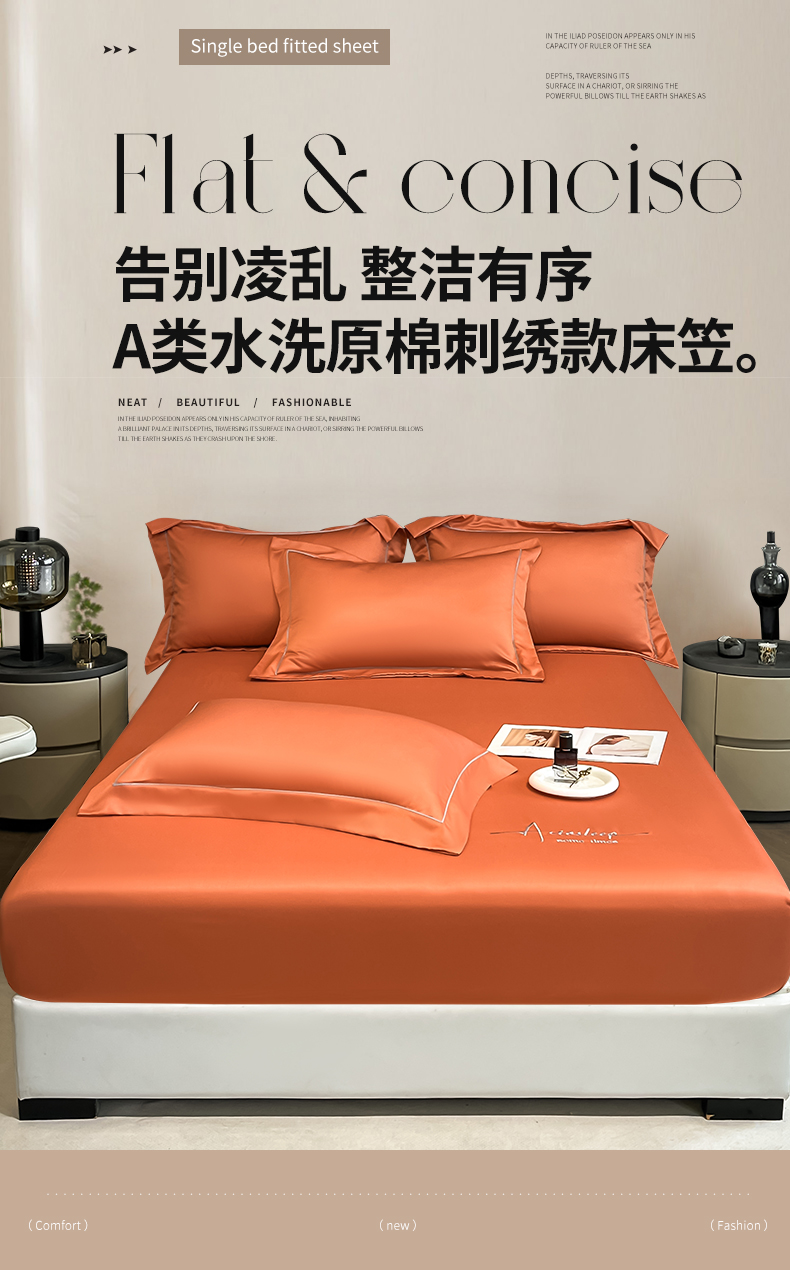 • 91家纺网 家纺一手货源 找家纺 露梦家纺 2025新款A类水洗原棉刺绣款床笠-星辰系列(提供买家秀) 星辰-桔色