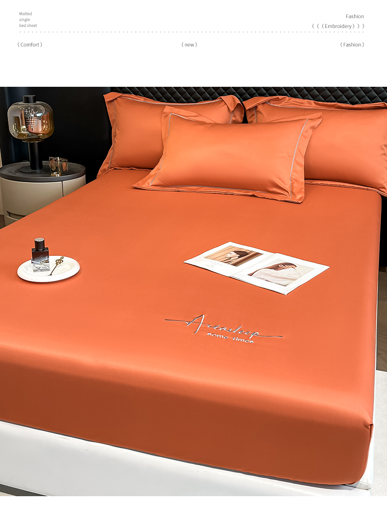 露梦家纺 2025新款A类水洗原棉刺绣款床笠-星辰系列(提供买家秀) 星辰-桔色