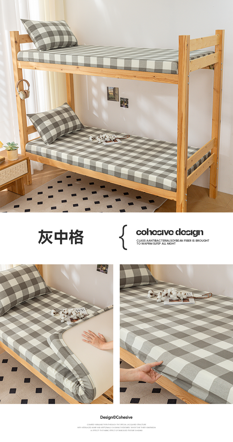 商品名称:寐眠 2024新款A类全棉水洗棉学生床笠系列 灰中格