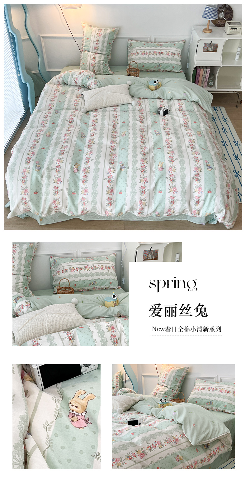 2024新款13070跑量款全棉四件套--小清新系列 爱丽丝兔