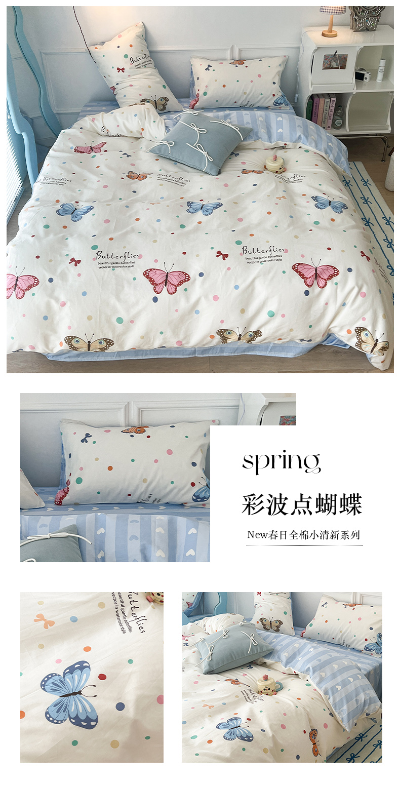 商品名称:2024新款13070跑量款全棉四件套--小清新系列 彩波点蝴蝶