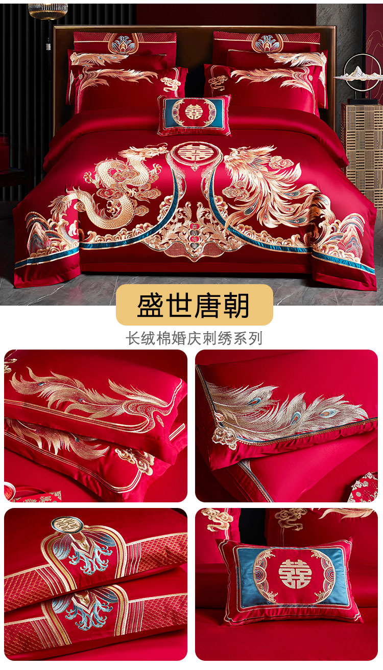 (总)用心 2025新款长绒棉刺绣新中式婚庆多件套系列,云锦东方,龙祥凤禧,盛世华章,盛世龙凤,皇朝囍嫁,皇家风范,锦绣华章,龙凤呈囍,龙腾凤跃,龙腾天下,唐朝喜嫁,御赐婚礼,龙凤情缘,龙翔风喜