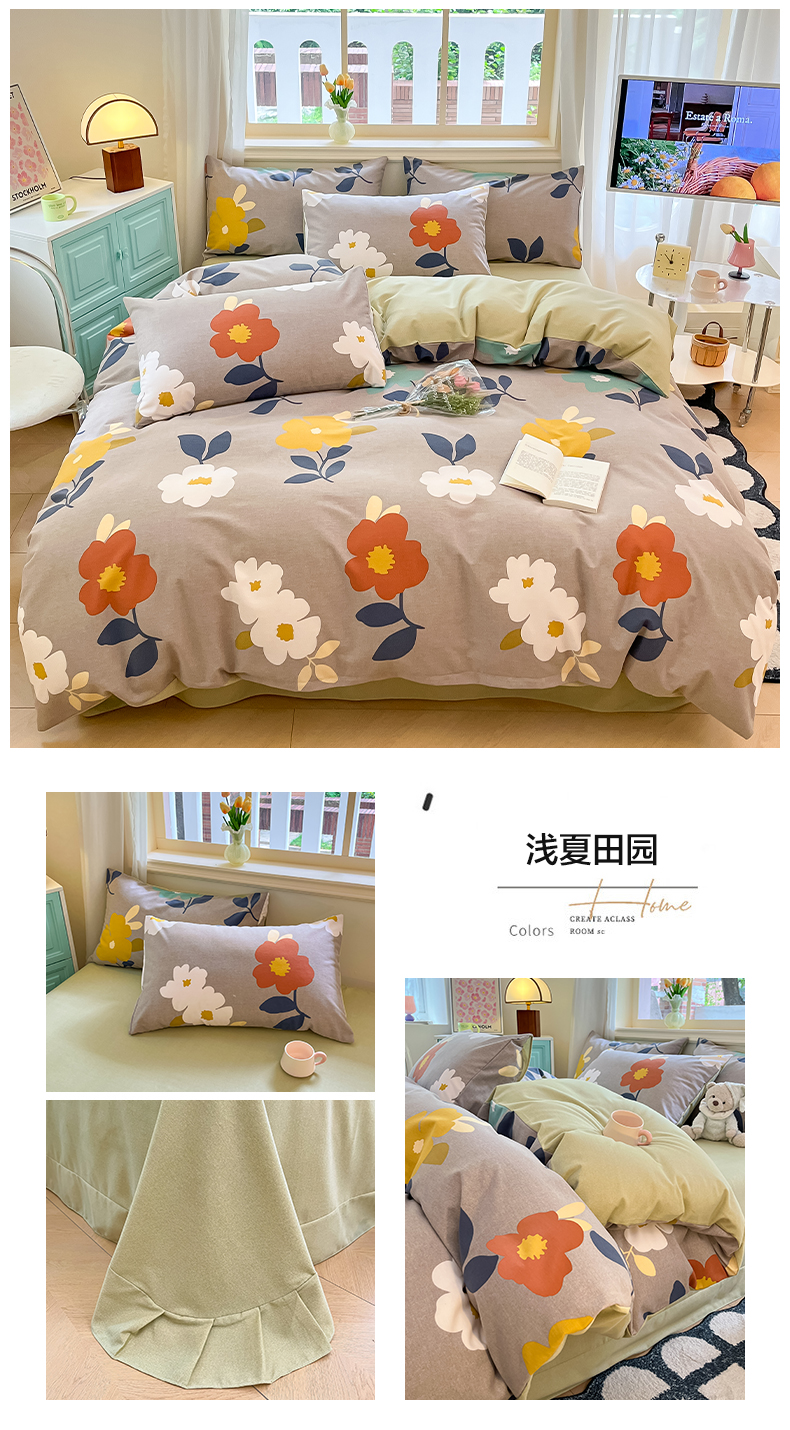 当前位置: 91家纺网 > 商品网购 > 床品套件 > 四件套 > 普通磨毛四件套 > 莱米家纺 2024新款全棉加厚磨毛印花四件套 浅夏田园