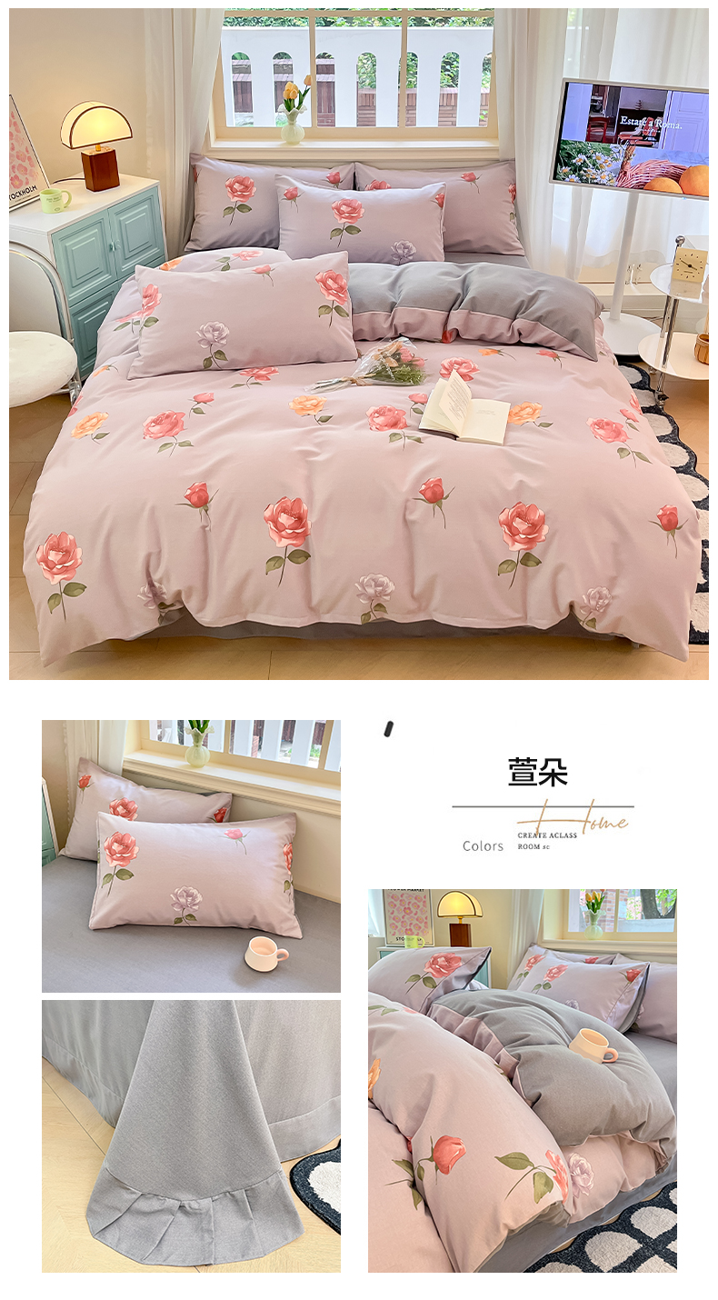 当前位置: 91家纺网 > 商品网购 > 床品套件 > 四件套 > 普通磨毛四件套 > 莱米家纺 2024新款全棉加厚磨毛印花四件套 萱朵