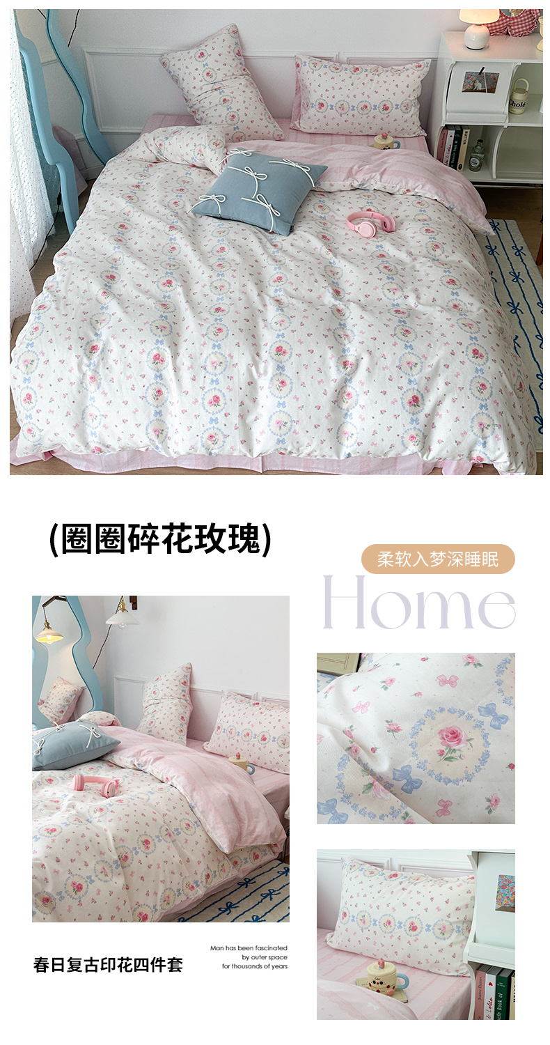 2024新款13070跑量款全棉四件套--花卉系列 圈圈碎花玫瑰