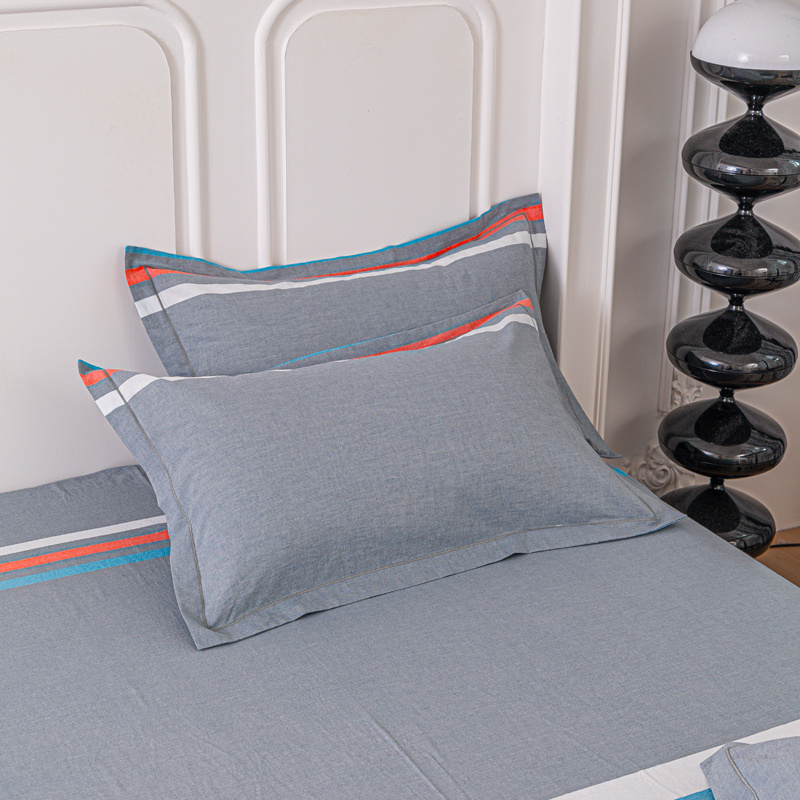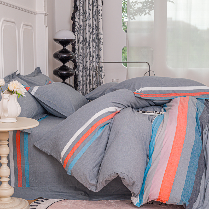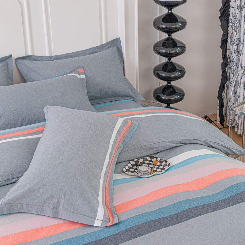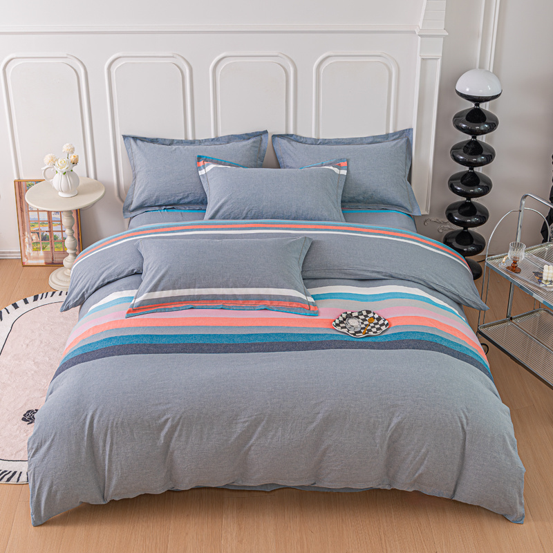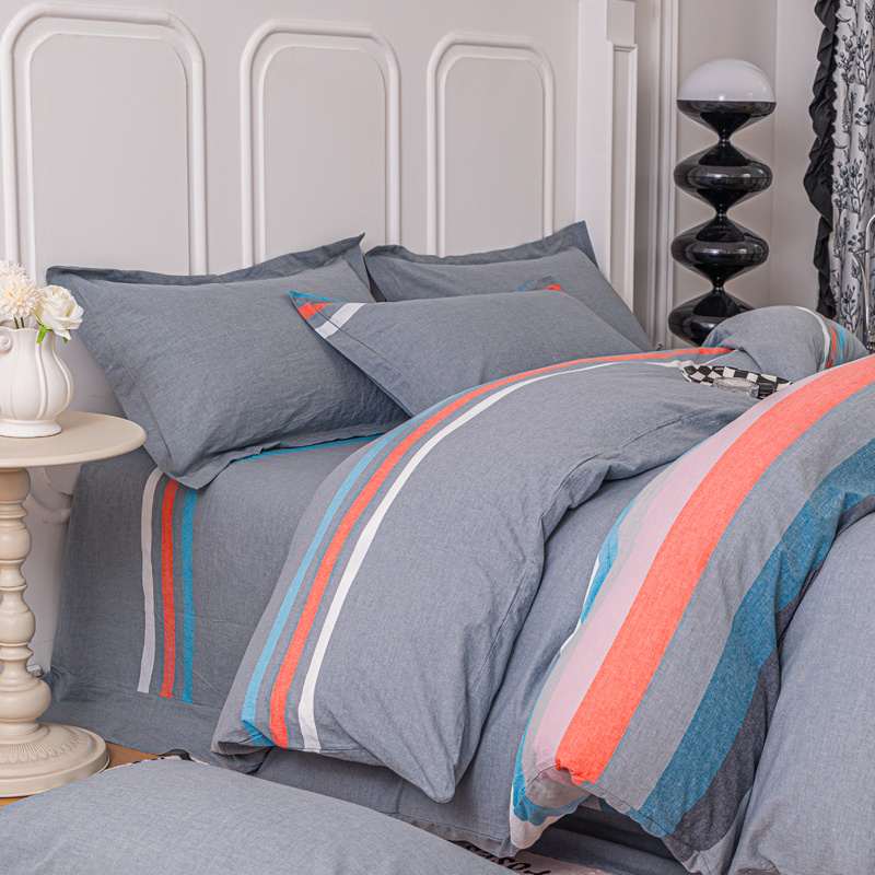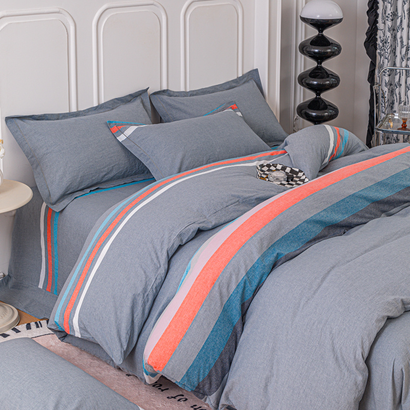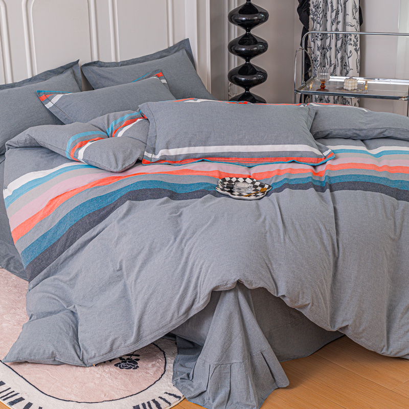商品名称:喜四方 2024新款色织全棉水洗棉四件套 贝加莫灰