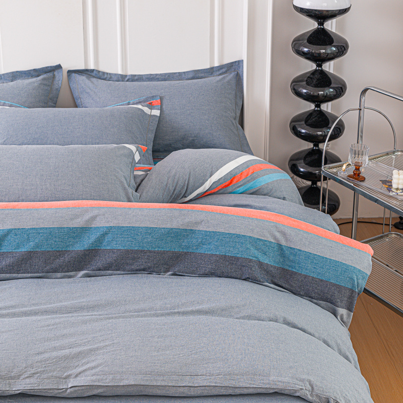 喜四方 2024新款色织全棉水洗棉四件套 贝加莫灰