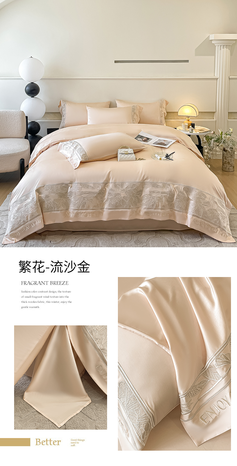 当前位置: 91家纺网 > 商品网购 > 床品套件 > 四件套 > 全棉普通四件套 > 慕色家纺 2024新款全棉刺绣四件套-繁花系列 繁花-流沙金