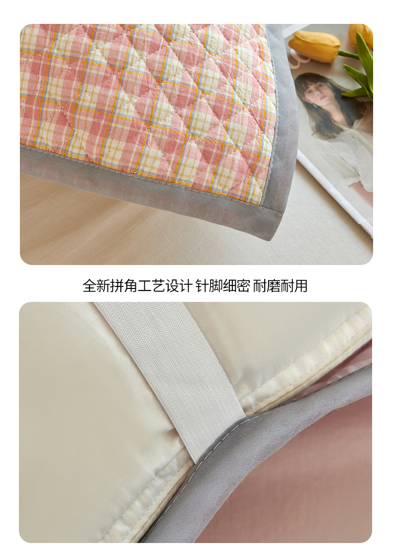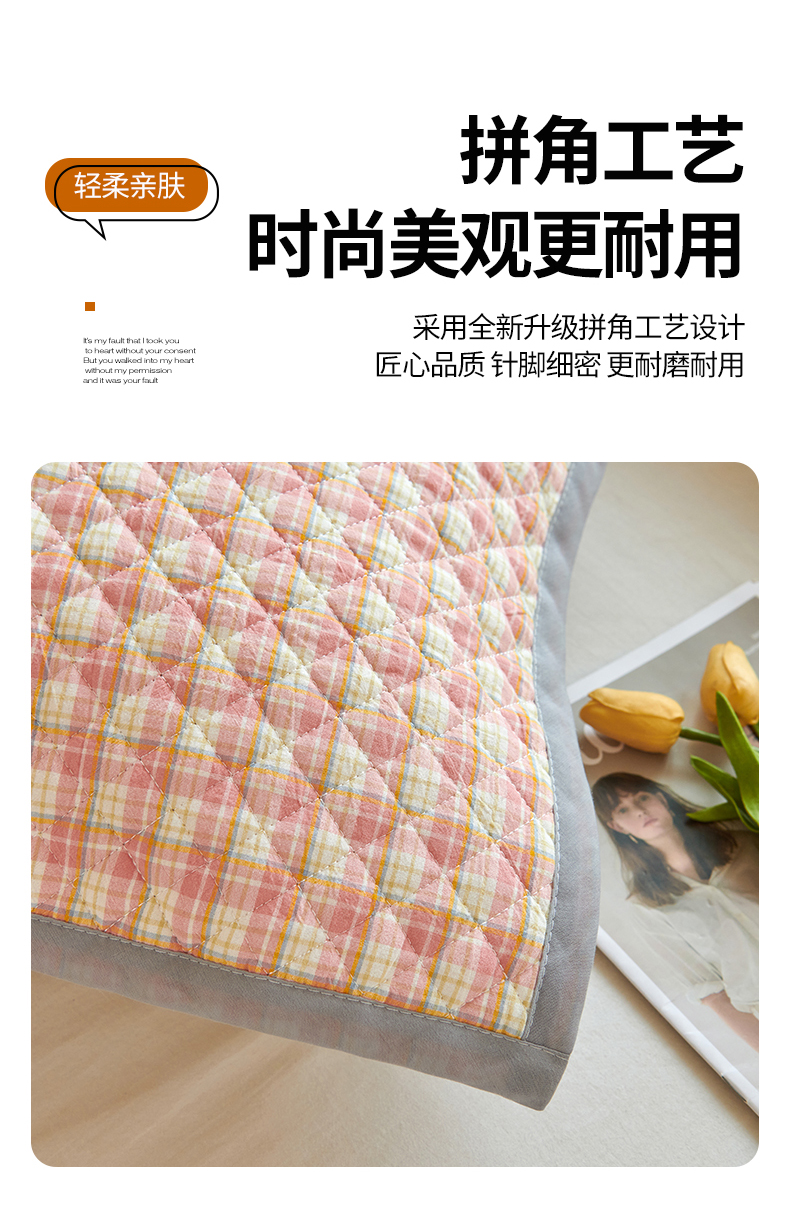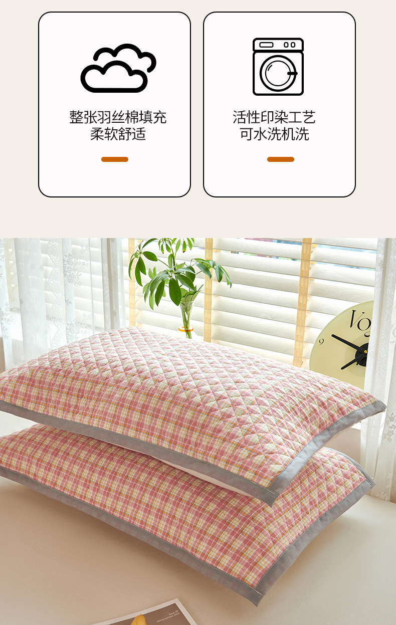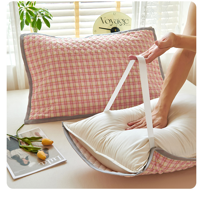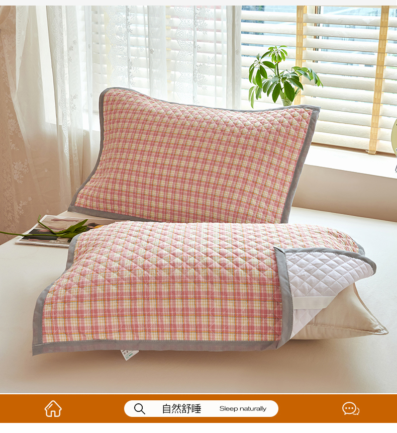 商品名称:美宜家 2025枕巾全棉水洗色织绗缝绑带防滑枕巾,加厚夹棉透气隔脏防头油拼角枕巾 明古粉