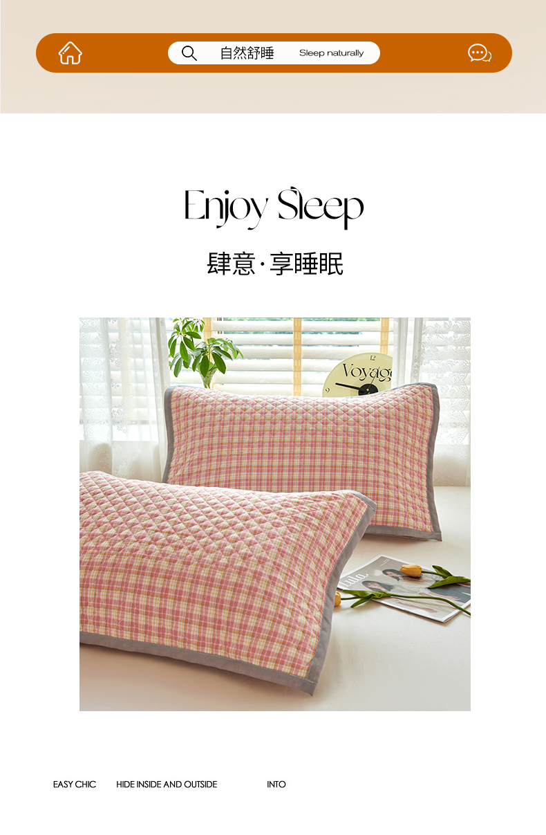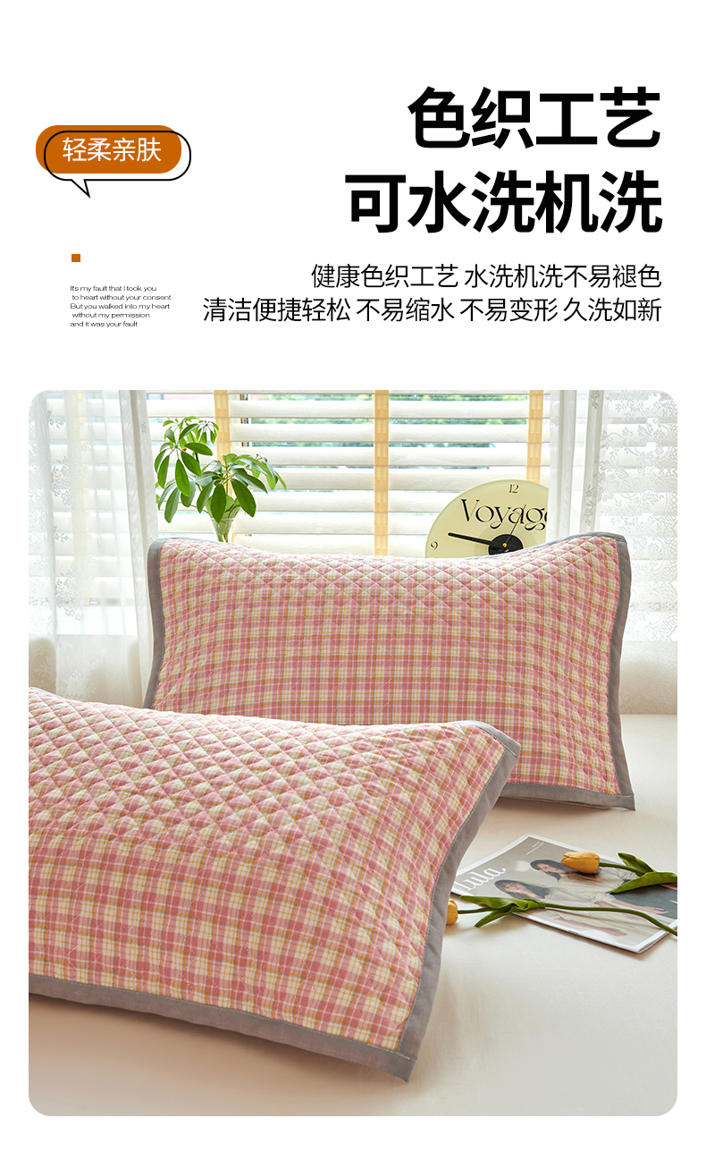 (总)美宜家 2026新款全棉枕头套高密色织水洗加棉绗缝高端纯色枕套,极简山灰,极简米其,极简兰灰,极简仔兰