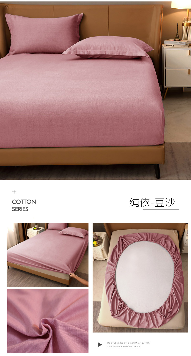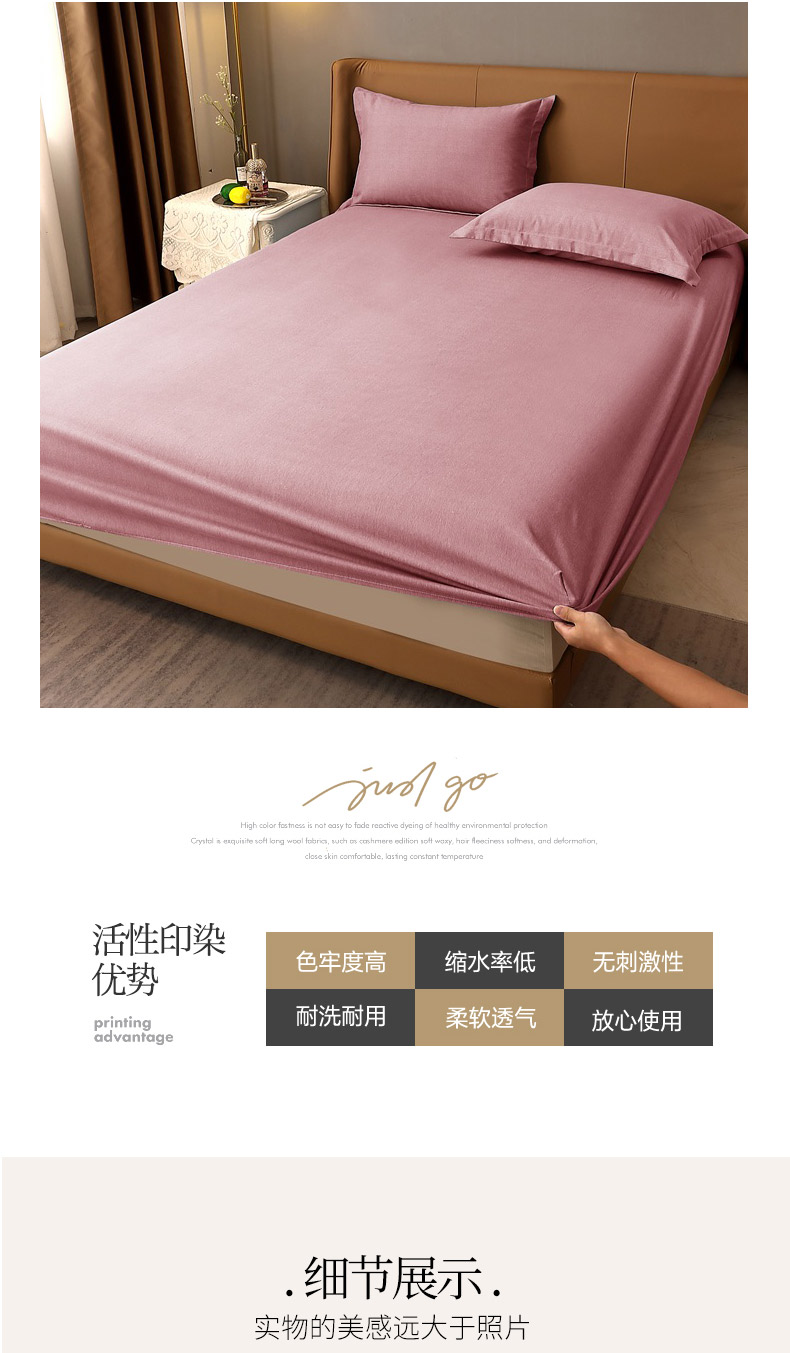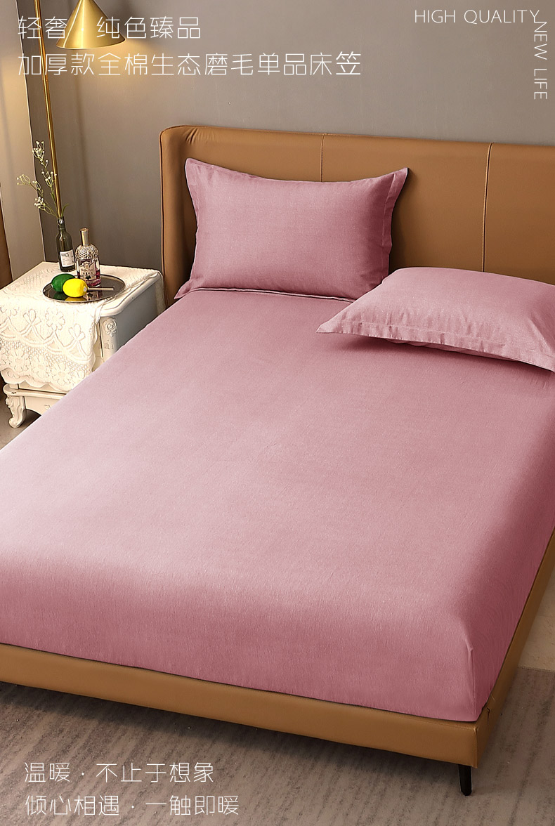 晶缦家纺 2024新款加厚纯棉喷气全棉纯色生态磨毛多规格单品床笠 纯依-豆沙