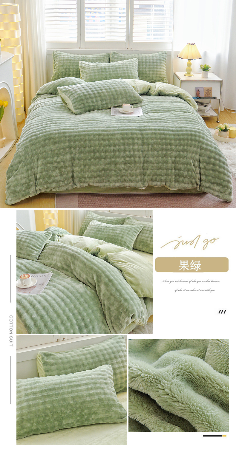商品名称:启优家纺 2024新款简约兔兔绒活性印染四件套 果绿