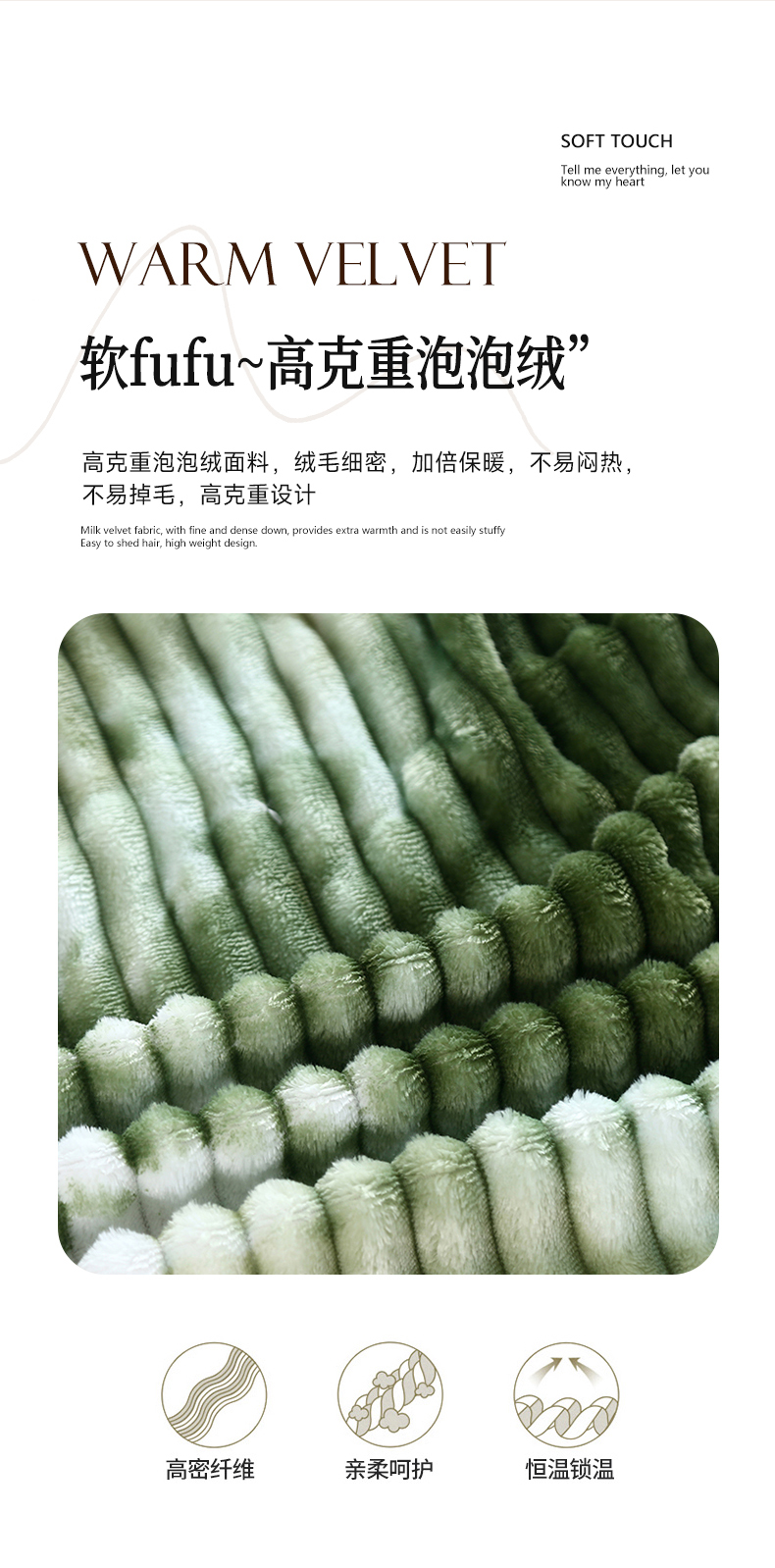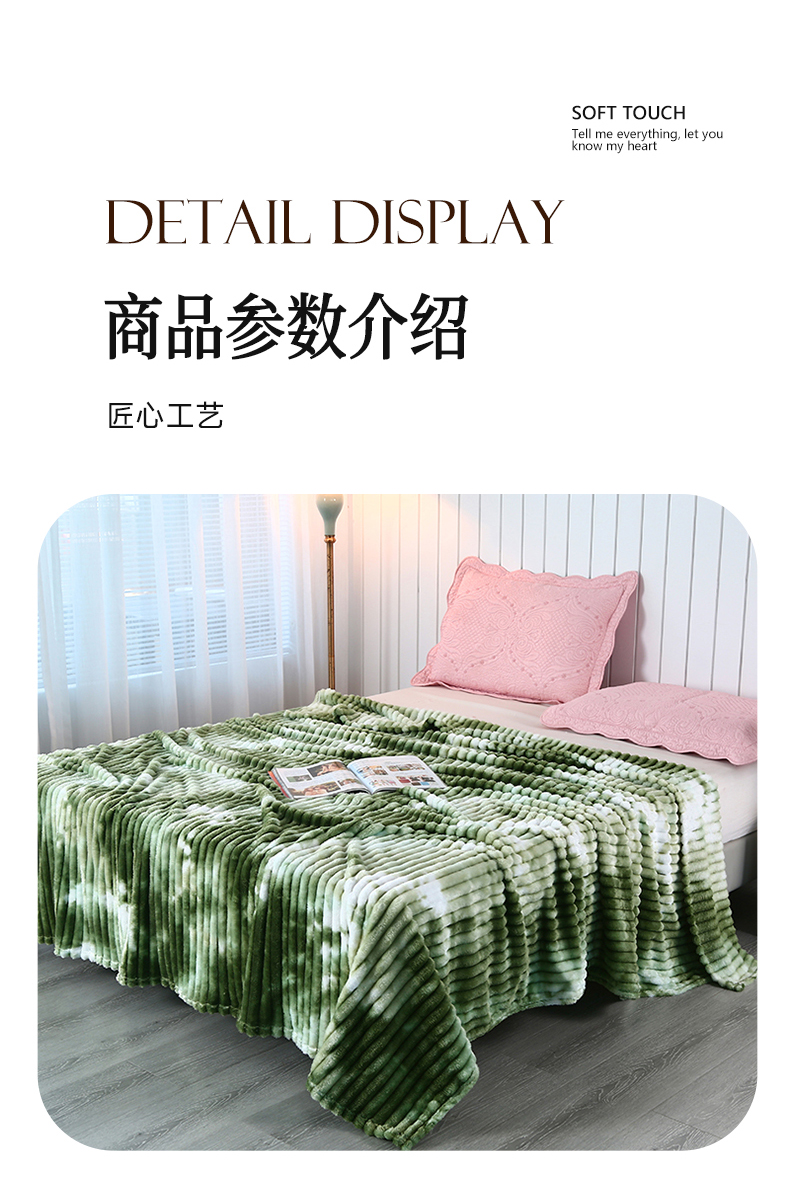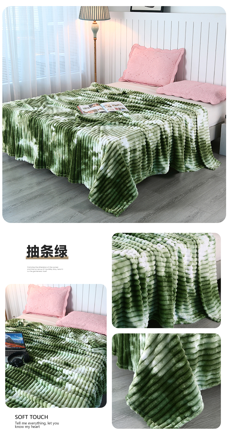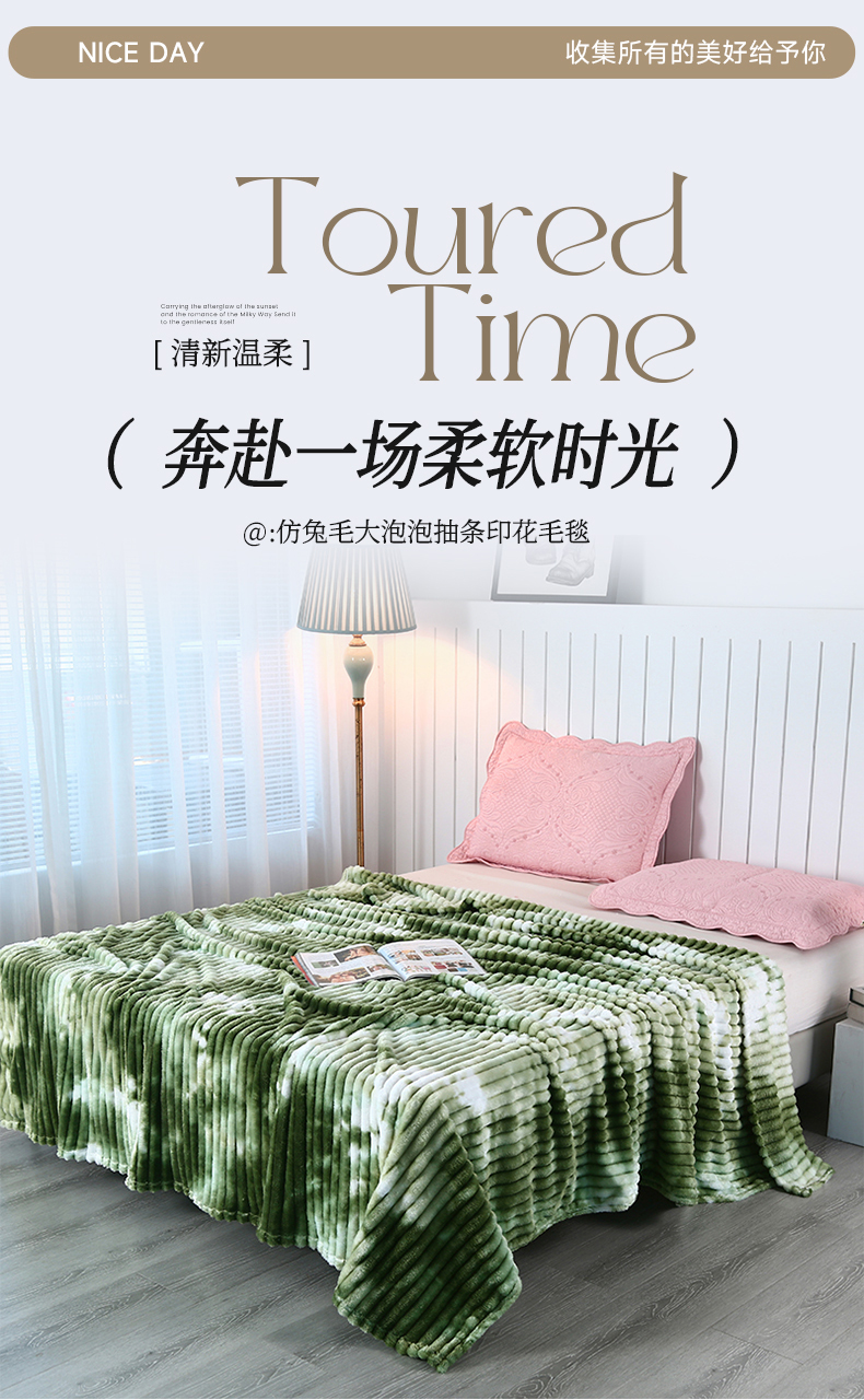 商品名称:美洲琳 2025新款仿兔毛大泡泡抽条印花毛毯 抽条绿