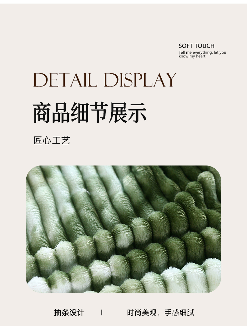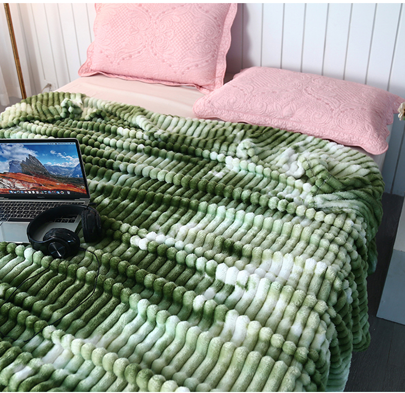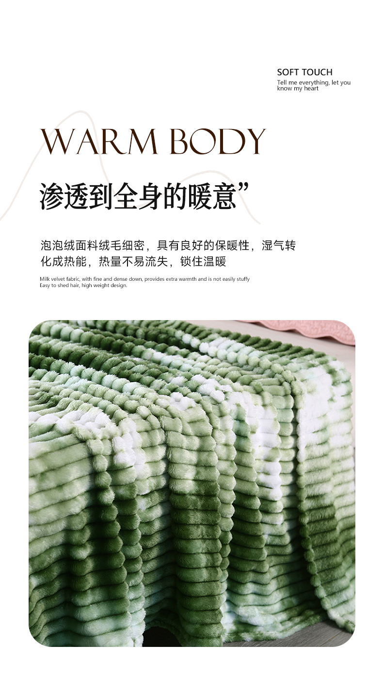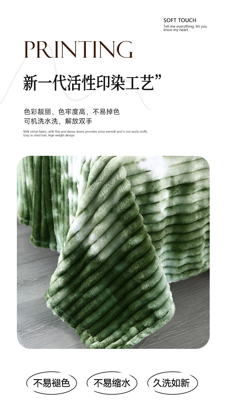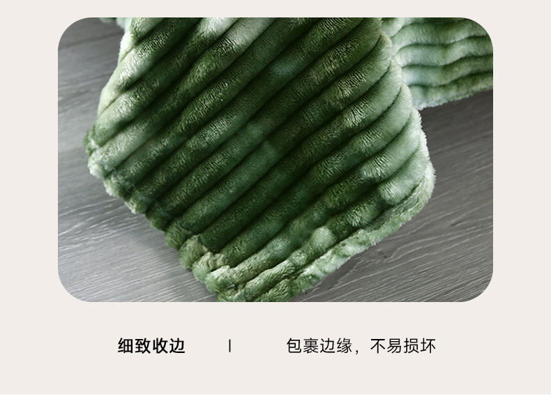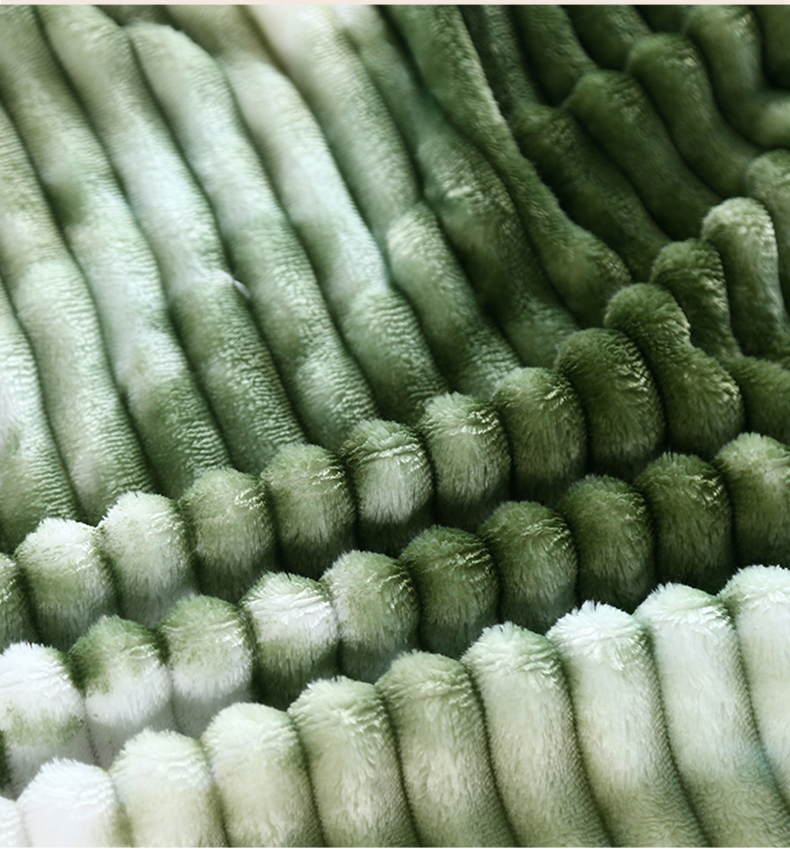 商品名称:美洲琳 2025新款仿兔毛大泡泡抽条印花毛毯 抽条绿